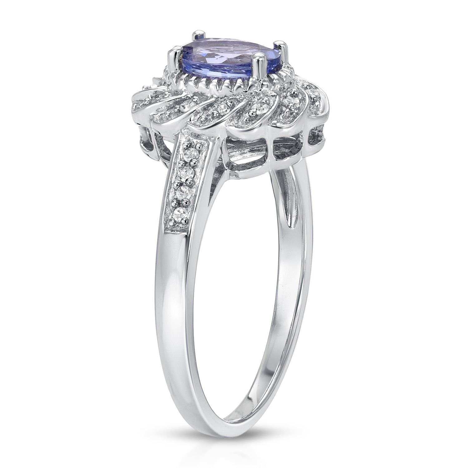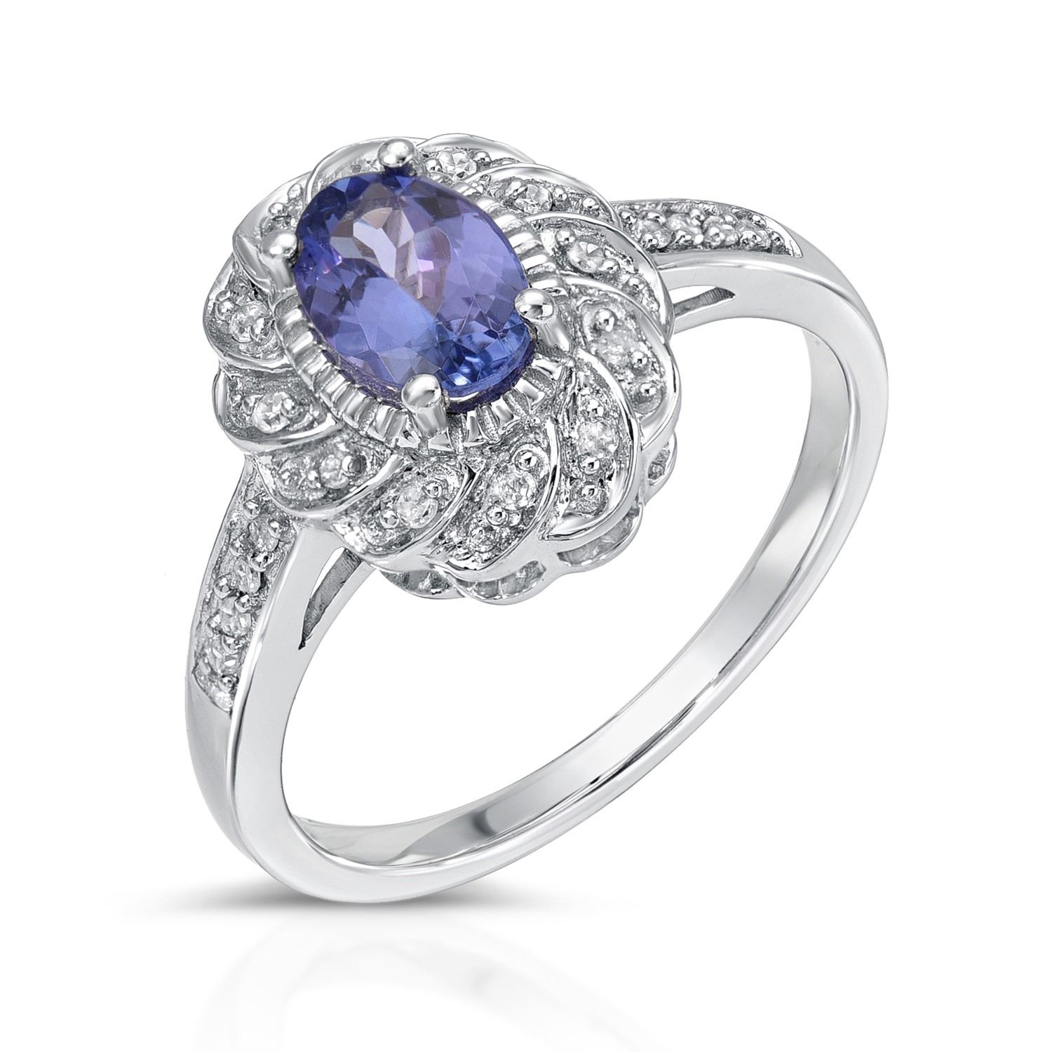 0.87 Carat Genuine Tanzanite and White Diamond.925 Sterling Silver Ring. Tanzanite Oval/7x5mm - 1/0.75 ctw Prong Setting Natural Heat Treated E + White Diamond Round/1.10mm - 20/0.12 ctw Natural Not Treated N. Total weight 3.2 grams. Ring Size 7.