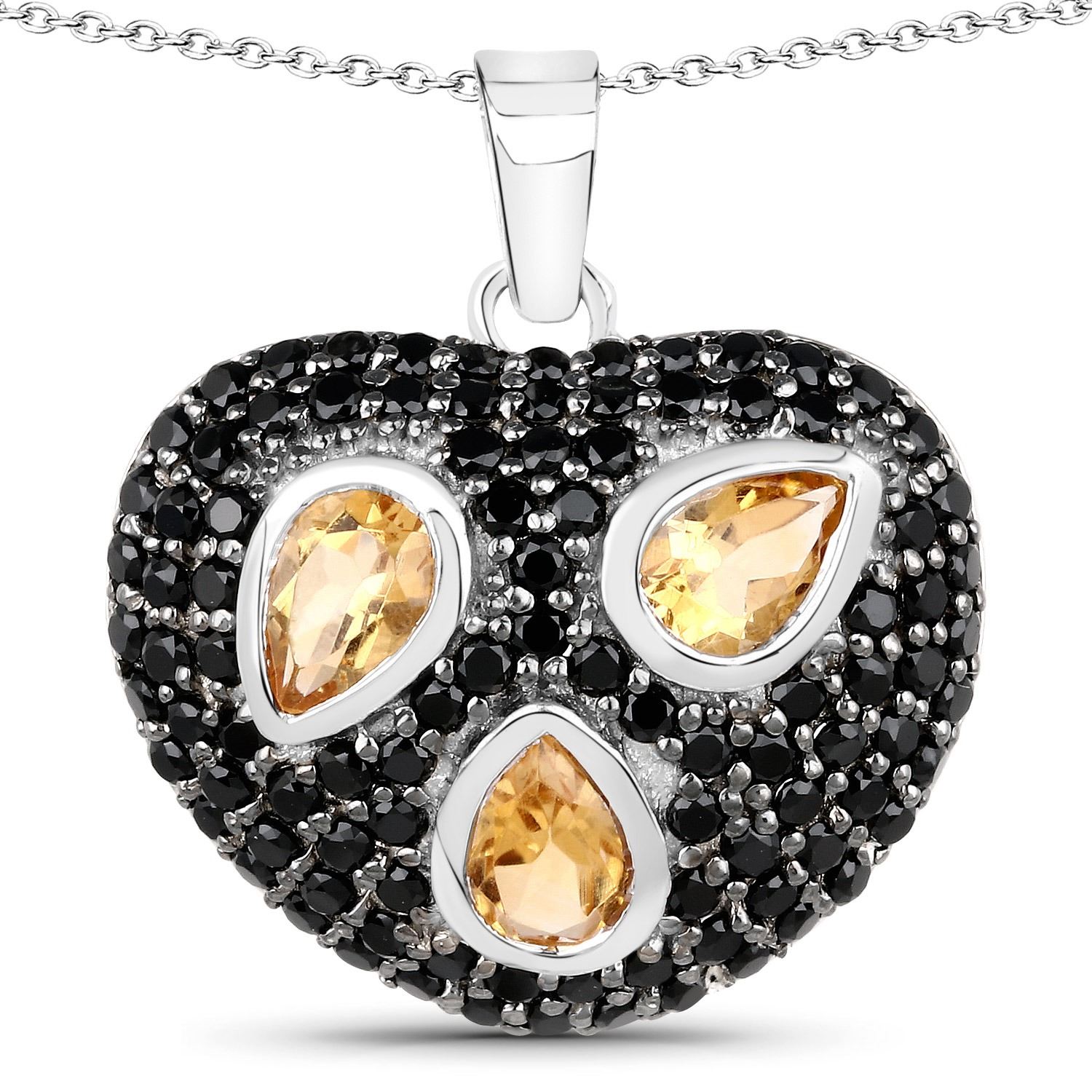 Plated Rhodium 1.11ctw Citrine and Black Spinal Pendant with Chain