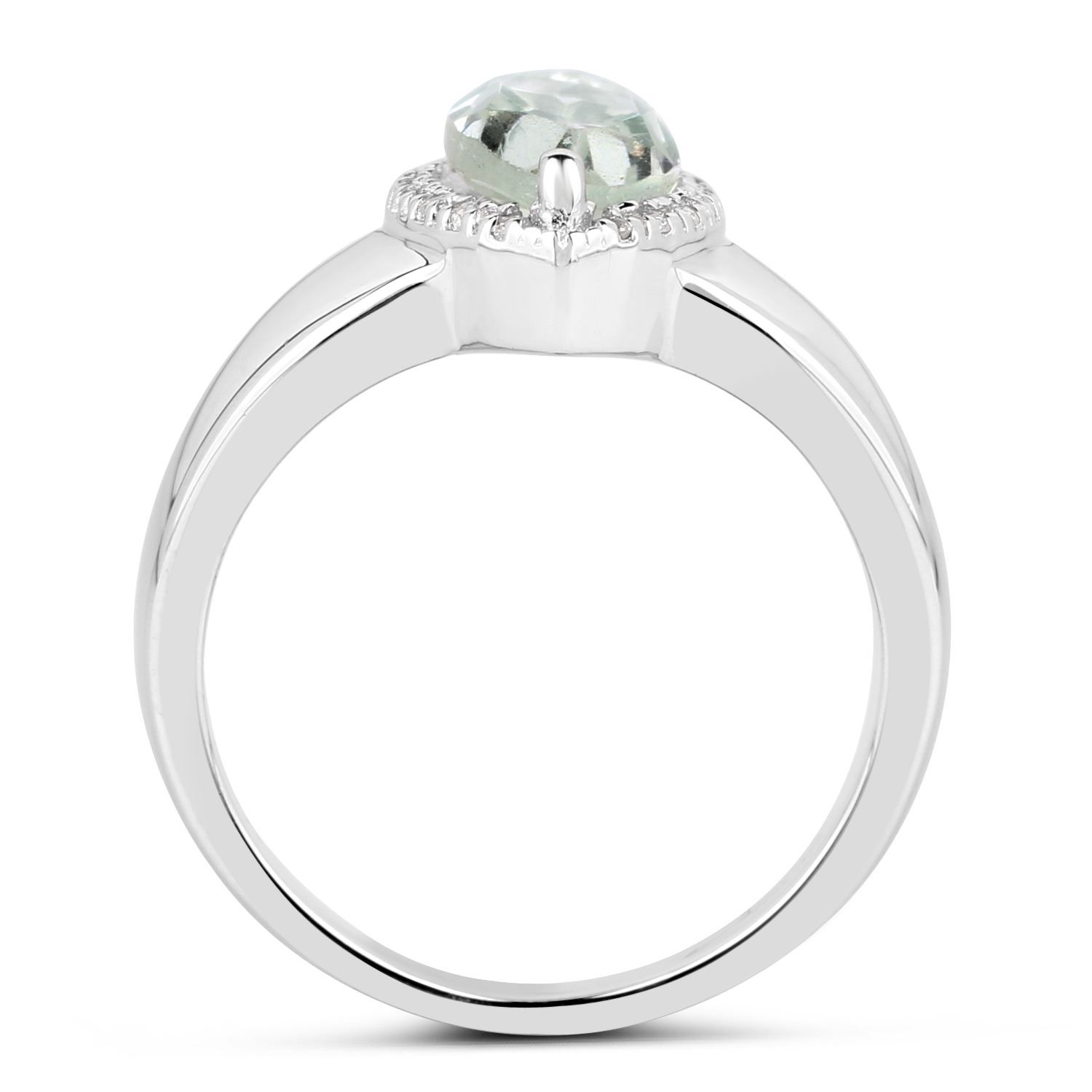 1.55 Carat Genuine Green Amethyst and White Topaz .925 Sterling Silver Ring. Green Amethyst Marquise/12x6mm - 1/1.55 ctw Prong Setting Natural Heat Treated E + White Topaz Round/1.00mm - 18/0.09 ctw Natural Heat Treated C. Total weight of ring is 5.7 grams. Ring size 7.