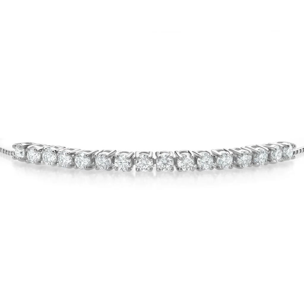 16 Moissanite round stones with a total weight of 1.6cts. Each stone is 0.10cts with a near flawless color measuring 3x3mm. Fully adjustable up to 9 inches.