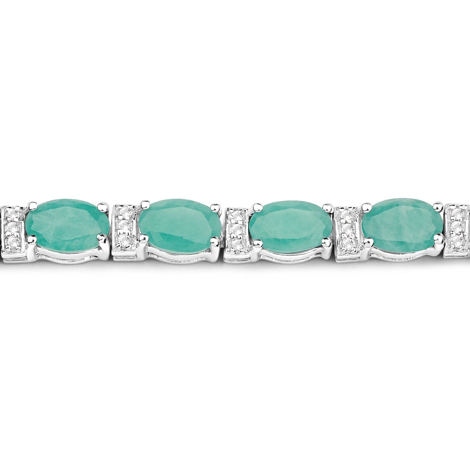 10.01 Carat Genuine Emerald and White Topaz.925 Sterling Silver Bracelet. Emerald Oval/6x4mm - 23/10.12 ctw Natural Oiled E + White Topaz Round/0.90mm - 70/0.35 ctw Natural Heat Treated C. Total weight 9.63 grams. Bracelet length is 7.5 inches.
