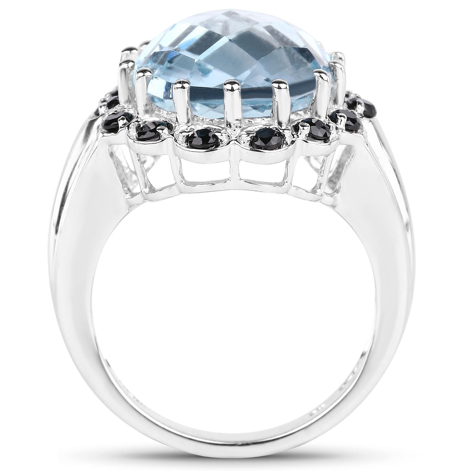 12.49 Carat Genuine Blue Topaz & Black Spinel .925 Sterling Silver Ring. Blue Topaz Oval/16x12mm - 1/11.93 ctw Natural Irradiated E + Black Spinel Round/2.00mm - 14/0.56 ctw Natural Not Treated N. Total weight of this ring is 8.45 grams. Ring size 7.