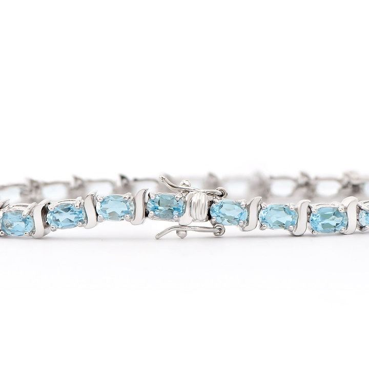 One Plated Rhodium 13.50ctw Blue Topaz Bracelet. (25) Blue Topaz stones with a total weight of 13.50cts. Total weight of this bracelet is 14.70 grams. The length of this bracelet is 7 1/2 inches.