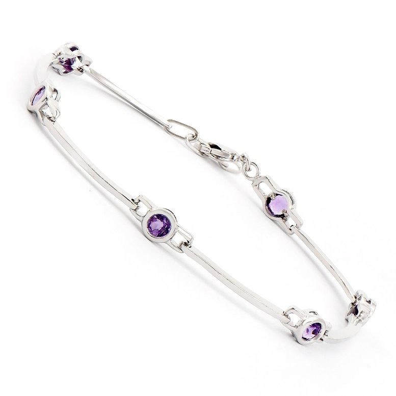 One Plated Rhodium 2.05ctw Amethyst Bracelet. (6) Amethyst stones with a total weight of 2.05cts. Total weight of this bracelet is 5.07 grams. The length of this bracelet is 7 1/2 inches.