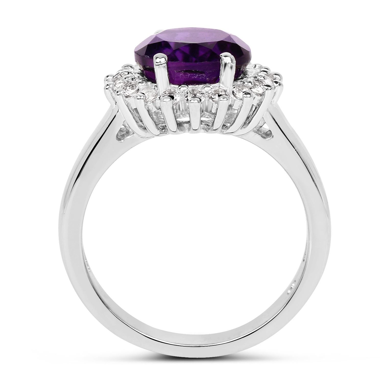 2.40 Carat Genuine Amethyst and White Topaz .925 Sterling Silver Ring. Amethyst Round/9.00mm - 1/2.40 ctw Natural Not Treated E + White Topaz Round/1.50mm - 18/0.40 ctw Natural Heat Treated C. Total weight of this ring is 4.87 grams. Ring size 7.