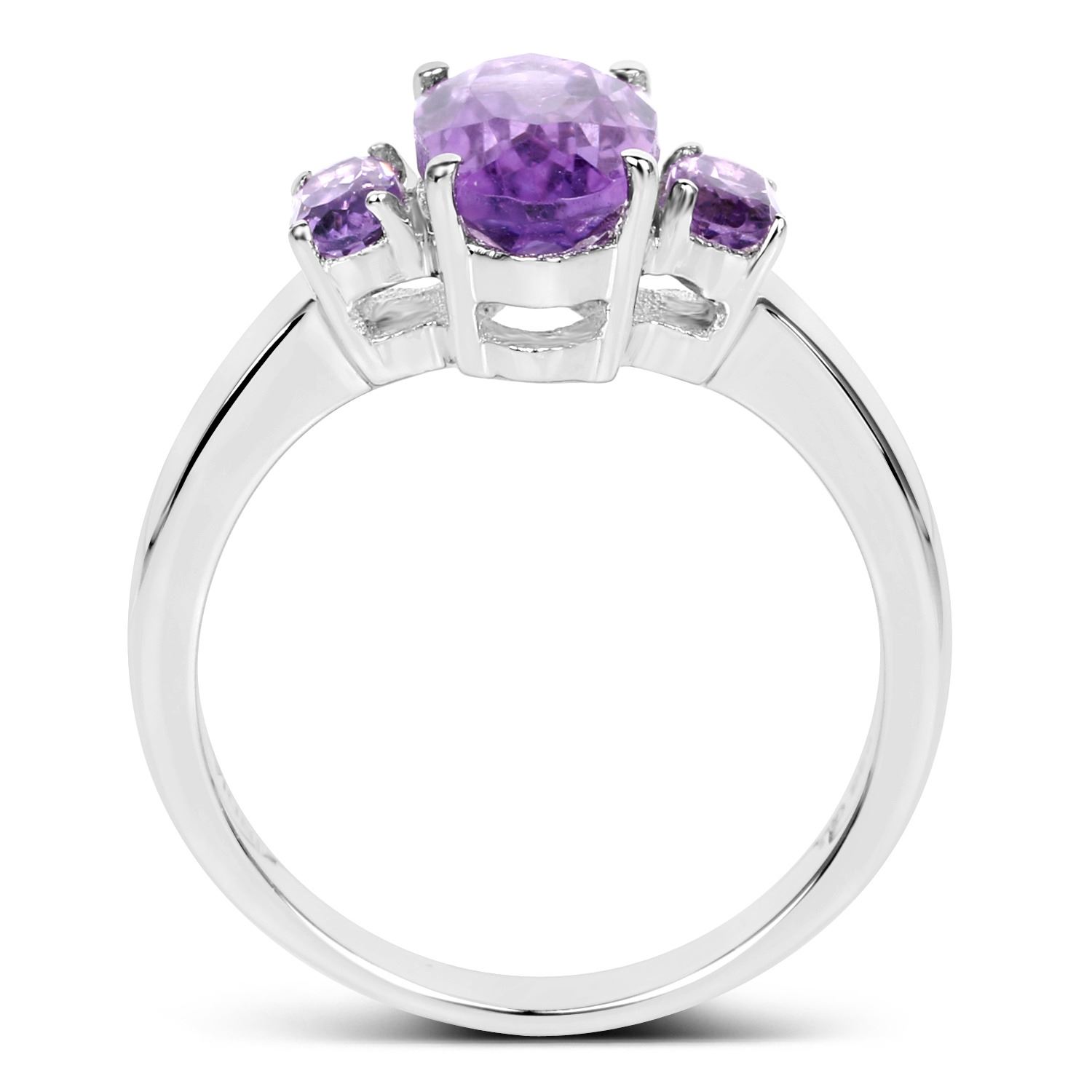 2.42 Carat Genuine Amethyst .925 Sterling Silver Ring. Amethyst Oval/12x6mm - 1/2.00 ctw Natural Not Treated E + Amethyst Oval/5x3mm - 2/0.42 ctw Natural Not Treated E. Total weight of this ring is 4.11 grams. Ring size 5.