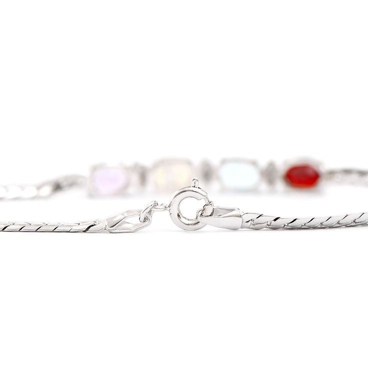 One Plated 3.35cts Multistone and Diamond Rhodium Bracelet 7.8 in. (4) Multi stones with a total weight of 3.32cts. (3) diamonds with a total of 0.03cts with a color of H-I and clarity of I-3. Total weight of this bracelet is 4.67 grams.