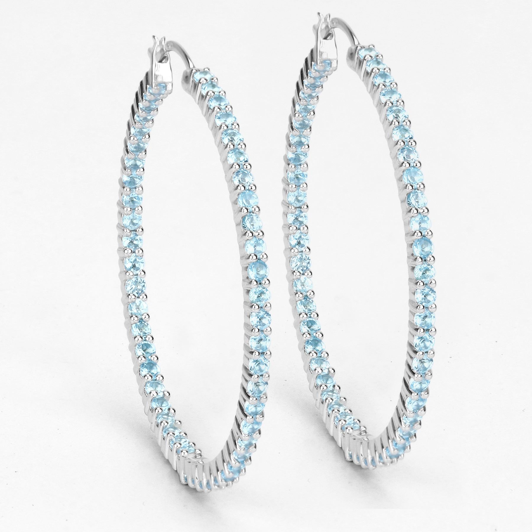 3.60 Carat Genuine Swiss Blue Topaz .925 Sterling Silver Earrings. Swiss Blue Topaz Round/2.00mm - 100/3.60 ctw Prong Setting Natural Irradiated E. Total weight of these earrings are 10.42 grams. Length 44.2mm.