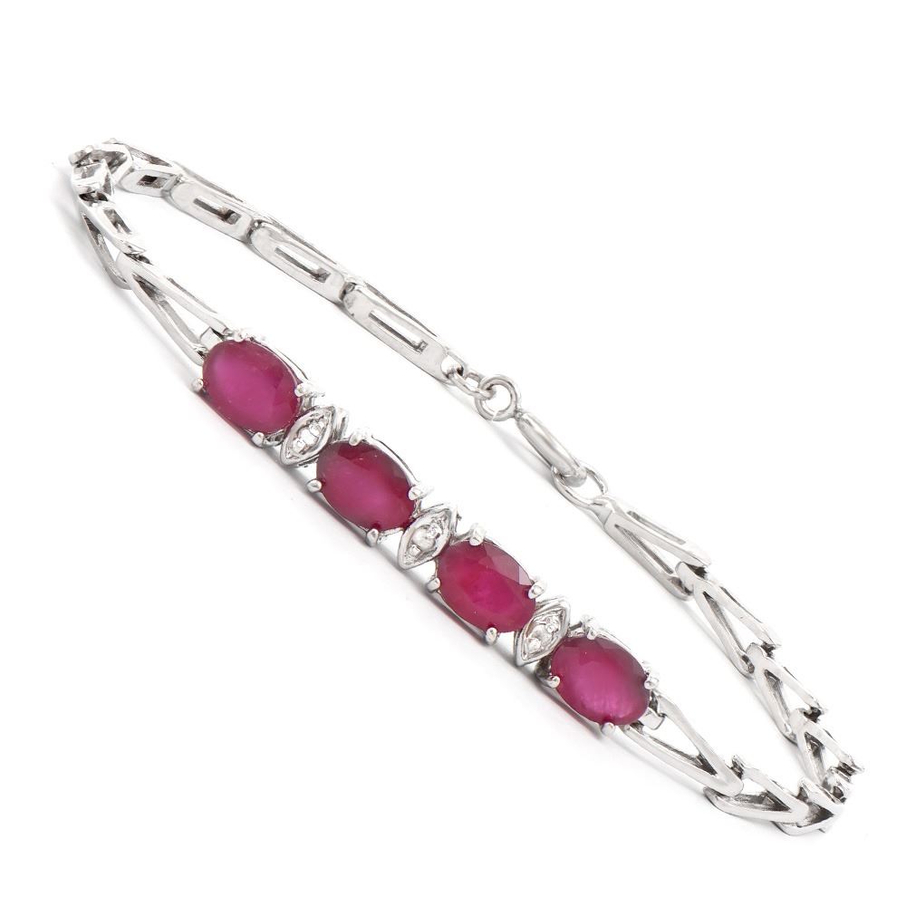 One Plated Rhodium 4.05ctw Ruby and Diamond Bracelet. (4) Rubies with a total weight of 4.05cts. Diamonds with a total weight of 0.03cts with a color of I-J and clarity of I-3. Total weight of this bracelet is 5.65 grams. The length of this bracelet is 7 1/2 inches.