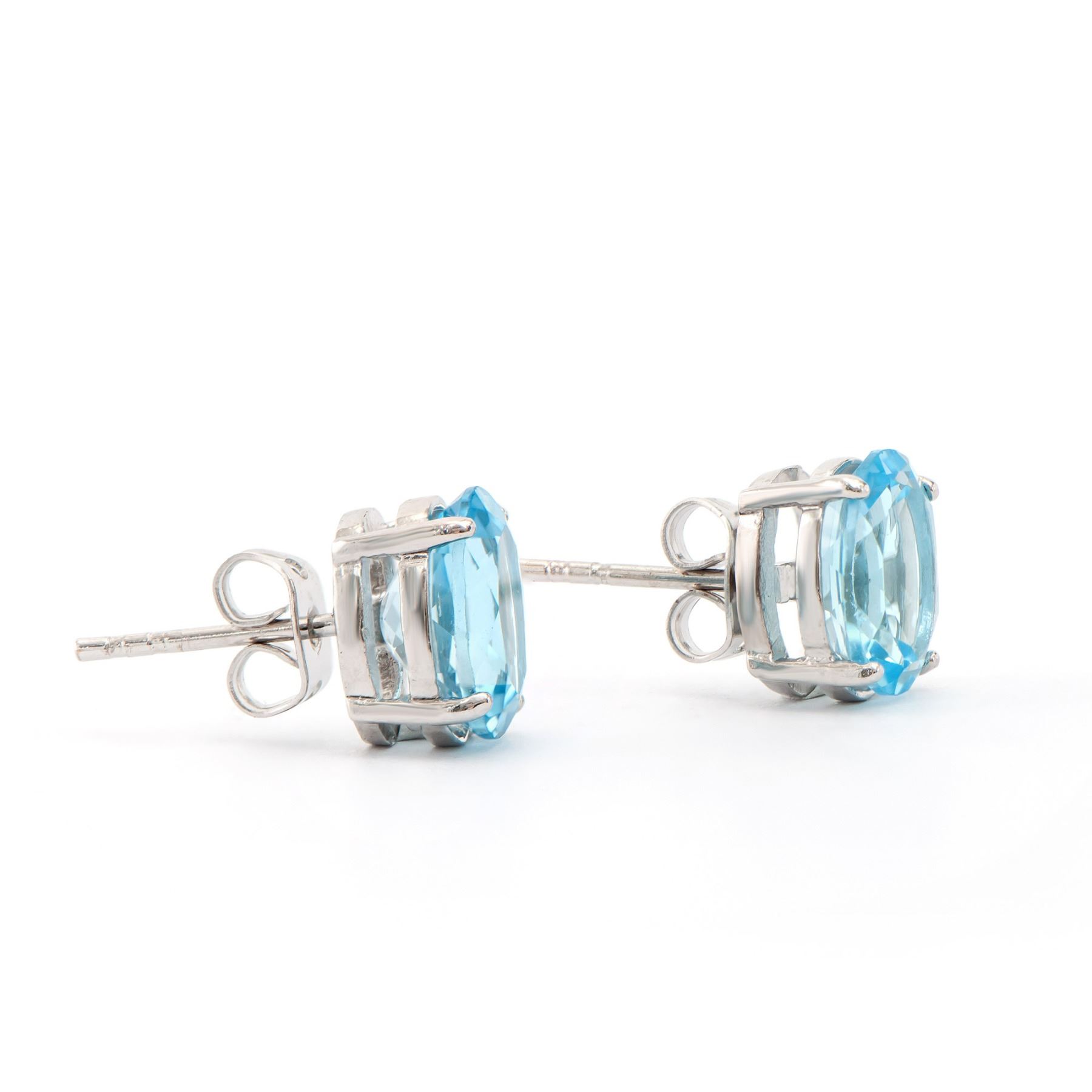 One Plated Rhodium 5.65ctw Blue Topaz Earrings. (2) Blue Topaz stones with a total weight of 5.65cts. Total weight of these earrings are 2.55 grams.
