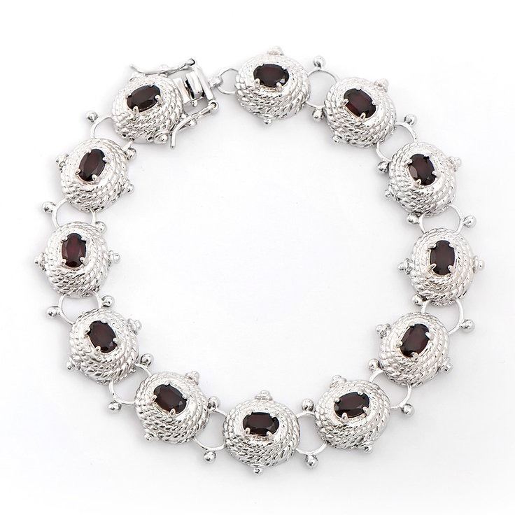 One Plated 6.05 TWcts Garnet Rhodium Bracelet 8.1 in. (12) Brown Garnet stones with a total weight of 6.05cts. Total weight of this bracelet is 21.82 grams.