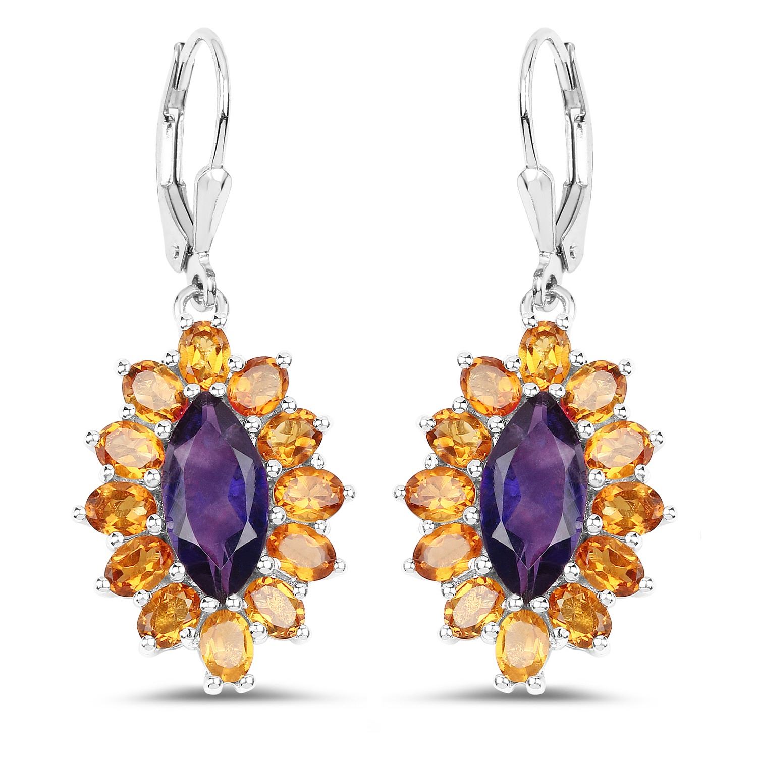 6.54 Carat Genuine Amethyst & Madeira Citrine.925 Sterling Silver Earrings. Amethyst Marquise/12x6mm - 2/2.70 ctw Natural Not Treated E + Citrine Oval/4x3mm - 24/3.84 ctw Natural Heat Treated N. Total weight 5.8 grams.