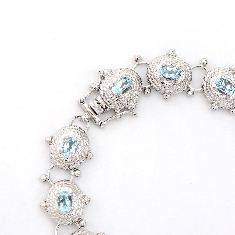 One Plated 6.55cts Blue Topaz Rhodium Bracelet 8 in. (12) Blue Topaz stones with a total weight of 6.55cts. Total weight of this bracelet is 21.67 grams.