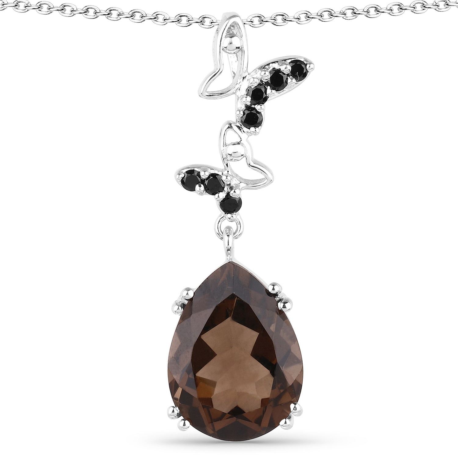 Plated Rhodium 6.80ct Smokey Quartz and Black Spinel Pendant with Chain
