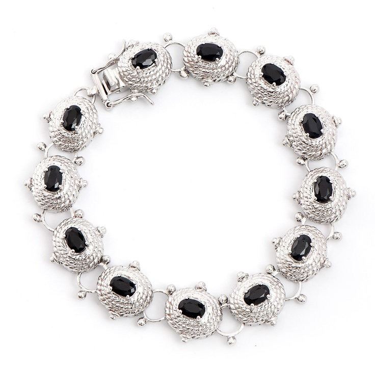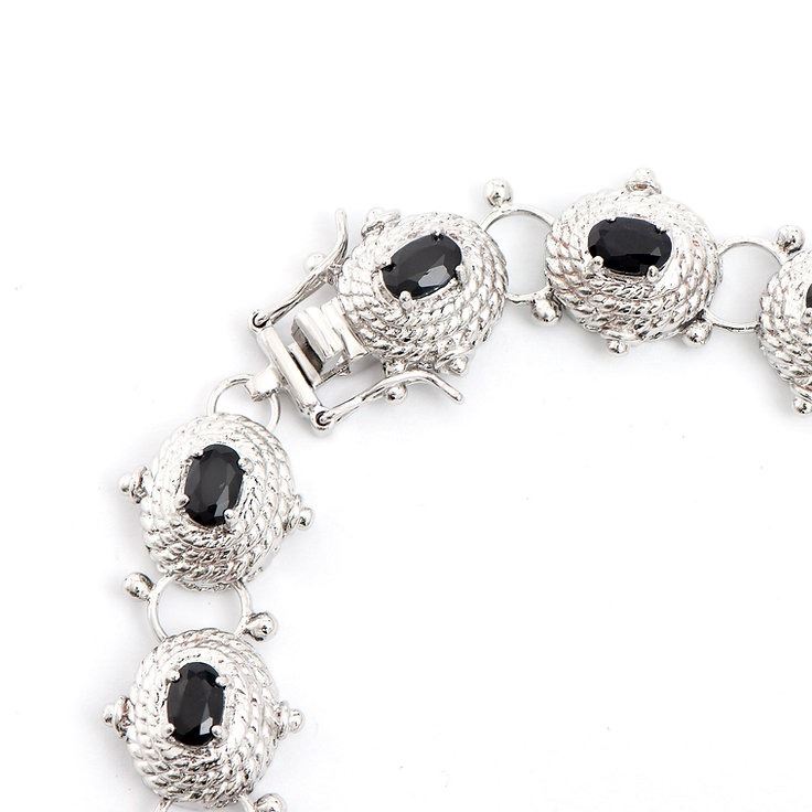 One Plated 7.45cts Sapphire Rhodium Bracelet 8.1 in. (12) Black Sapphire stones with a total weight of 7.45cts. Total weight of this bracelet is 22.41 grams.
