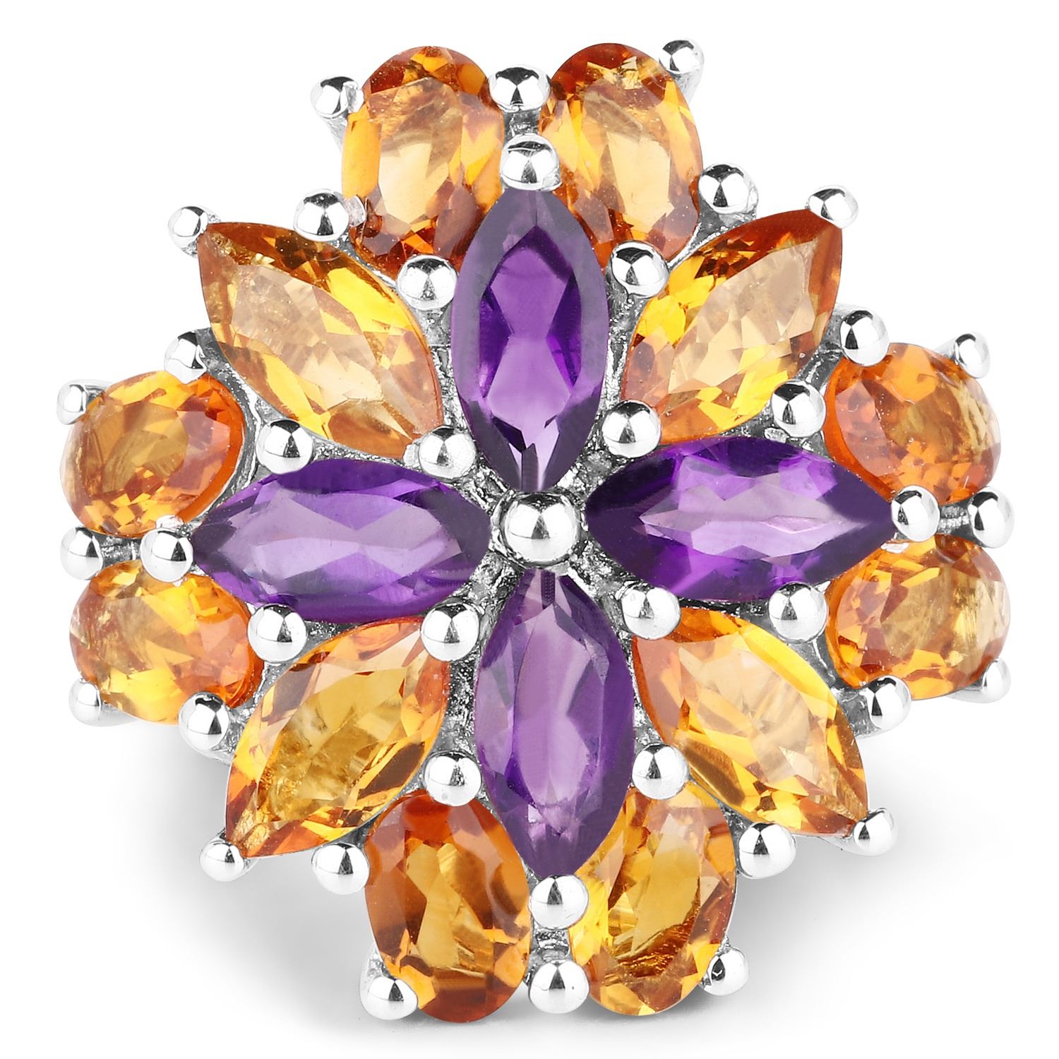 7.96 Carat Genuine Amethyst & Madeira Citrine.925 Sterling Silver Ring. Amethyst Marquise/8x4mm - 4/2.12 ctw Natural Not Treated E + Citrine Marquise/8x4mm - 4/2.40 ctw Natural Heat Treated N + Citrine Oval/6x4mm - 8/3.44 ctw Natural Heat Treated N. Total weight 8.7 grams. Ring size 9.