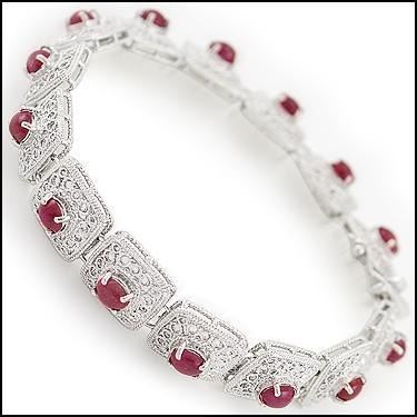 One Plated Rhodium 8.55ctw Ruby Bracelet. (14) Rubies with a total weight of 8.55cts. Total weight of this bracelet is 21 grams. The length of this bracelet is 7 1/2 inches.