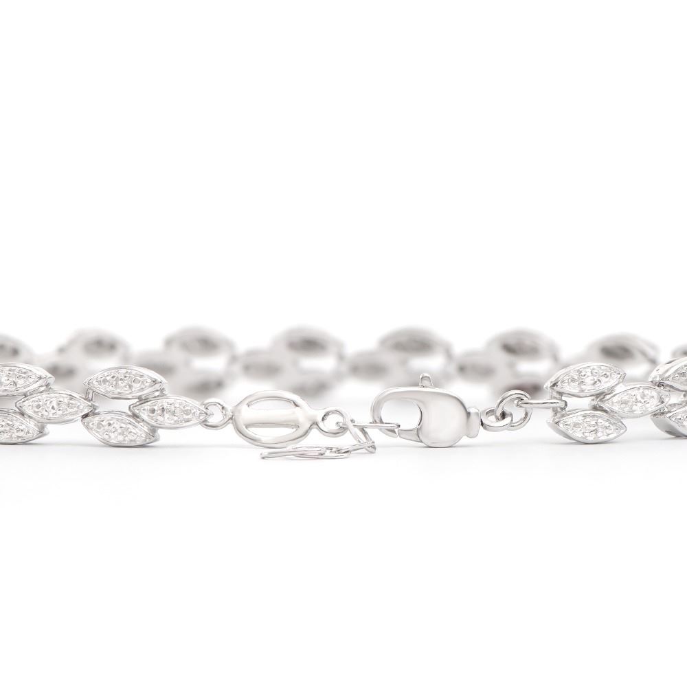 One Plated Rhodium Diamond Bracelet. Diamonds with a total weight of 0.18cts with a color of I-J and clarity of I-3. Total weight of this bracelet is 9.75 grams. The length of this bracelet is 7 1/2 inches.