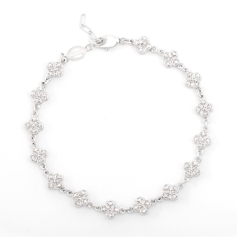 One Plated Rhodium Diamond Bracelet. Diamonds with a total weight of 0.11cts with a color of I-J and clarity of I-3. Total weight of this bracelet is 6.85 grams. The length of this bracelet is 7 1/2 inches.