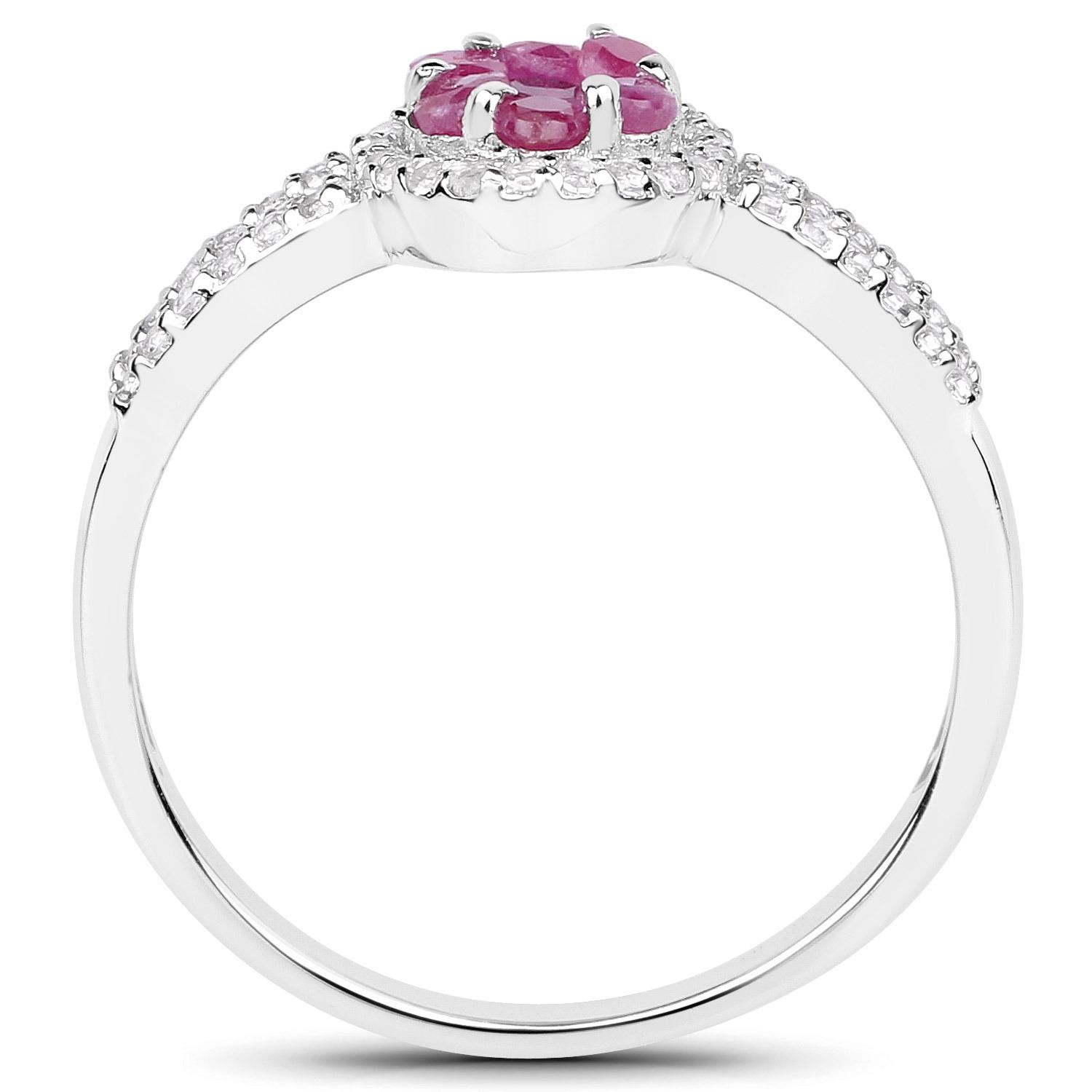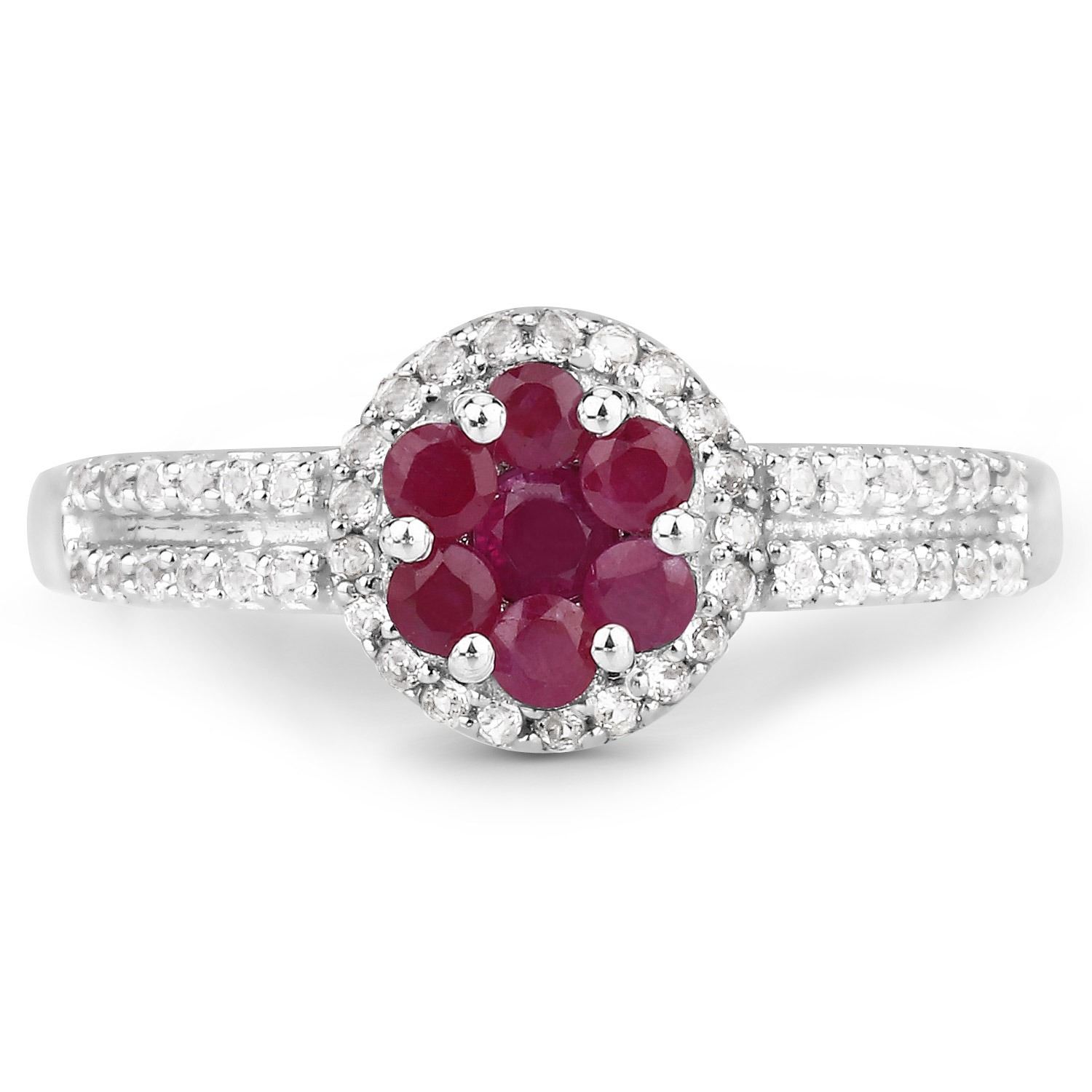 0.60 Carat Genuine Ruby and White Topaz.925 Sterling Silver Ring. Ruby Round/2.00mm - 6/0.30 ctw Prong Setting Natural Heat Treated F + Ruby Round/2.50mm - 1/0.07 ctw Natural Heat Treated F + White Topaz Round/1.00mm - 45/0.23 ctw Natural Heat Treated C. Total weight 2.42 grams. Ring size 9.