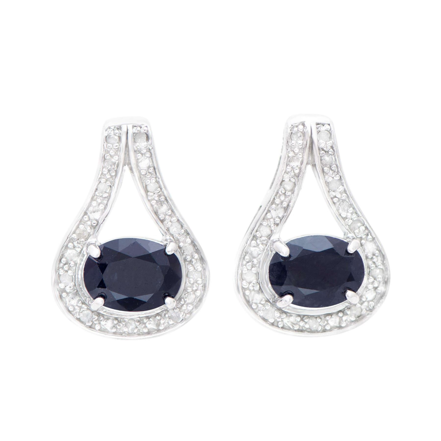 Plated Rhodium and Sterling Silver 3.15ctw Sapphire and Diamond Earrings