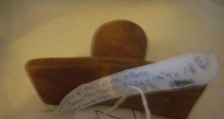 Platform Pipe, catlinite, found in Knox County, Ohio. Item measures approximately 3 1/2x 2 1/2x2 inches. Fine Condition. Shipping $15.00