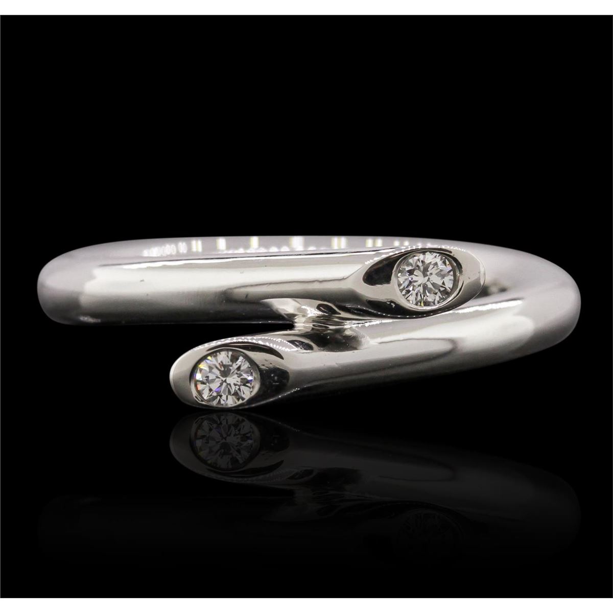 One platinum bezel set 0.09ctw round diamond crossover band with a total weight of 10.60 grams.