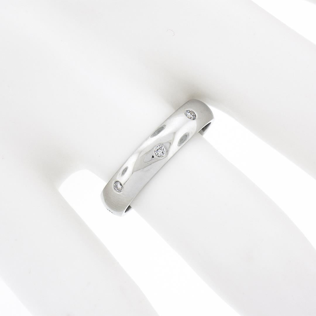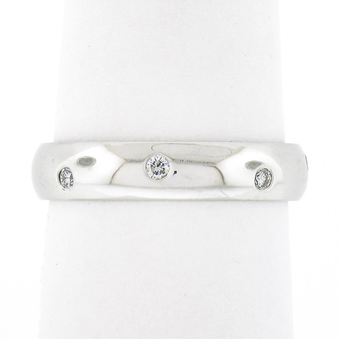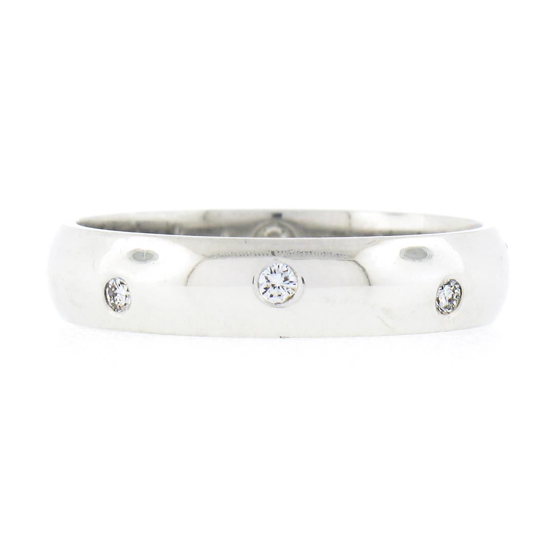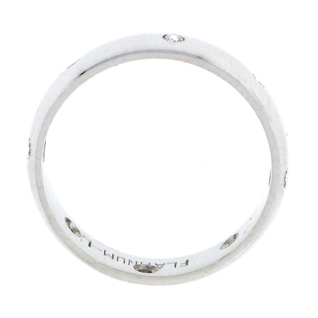 A solid platinum dome eternity band ring, with 8 round brilliant cut natural diamonds (G - VS1/VS2 ; 0.16ctw). The ring is size 6.5, weighs a total of 5.37 grams, and measures 4.1mm wide.