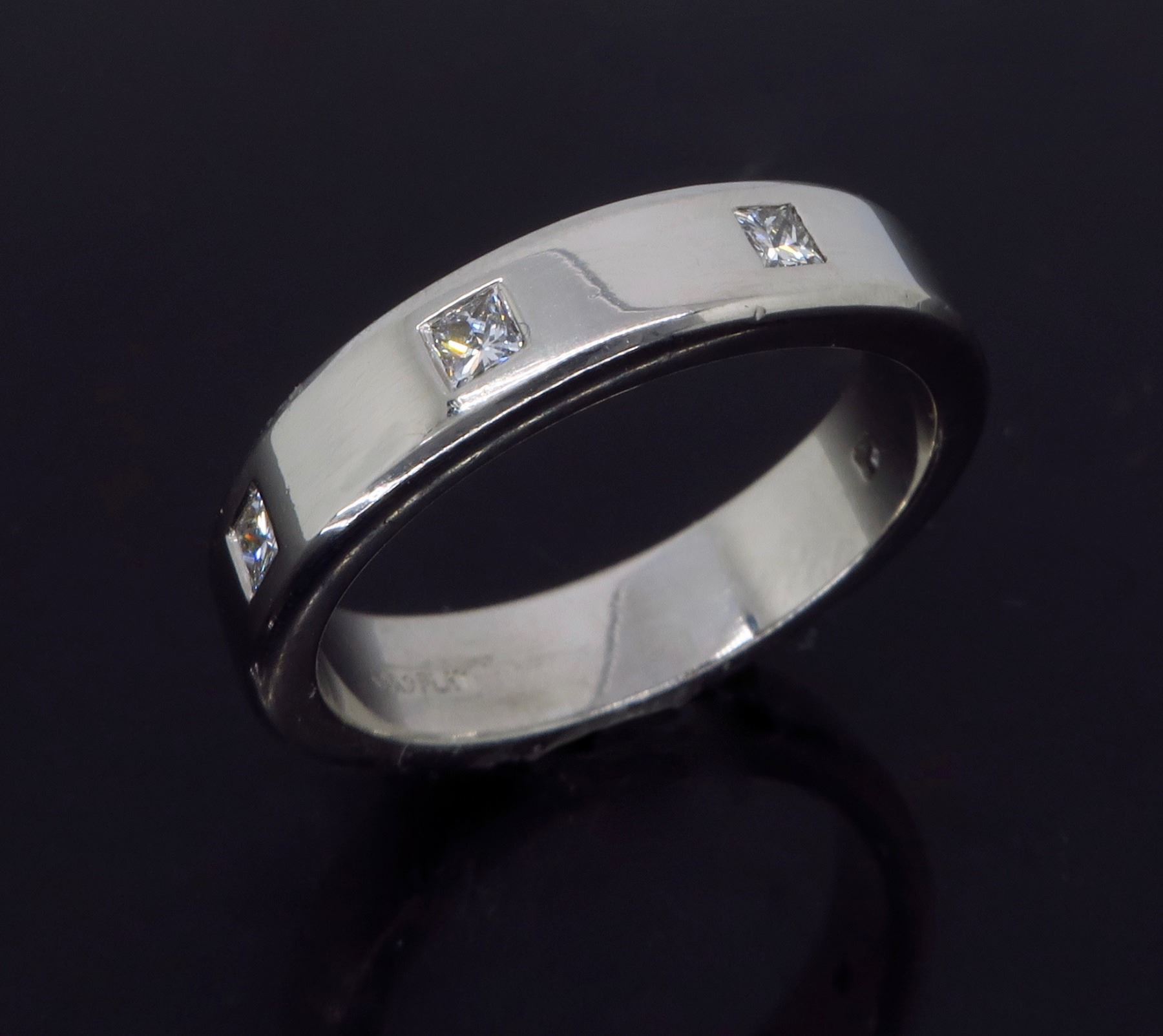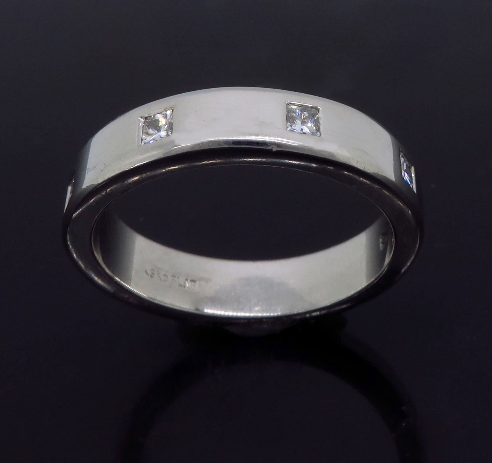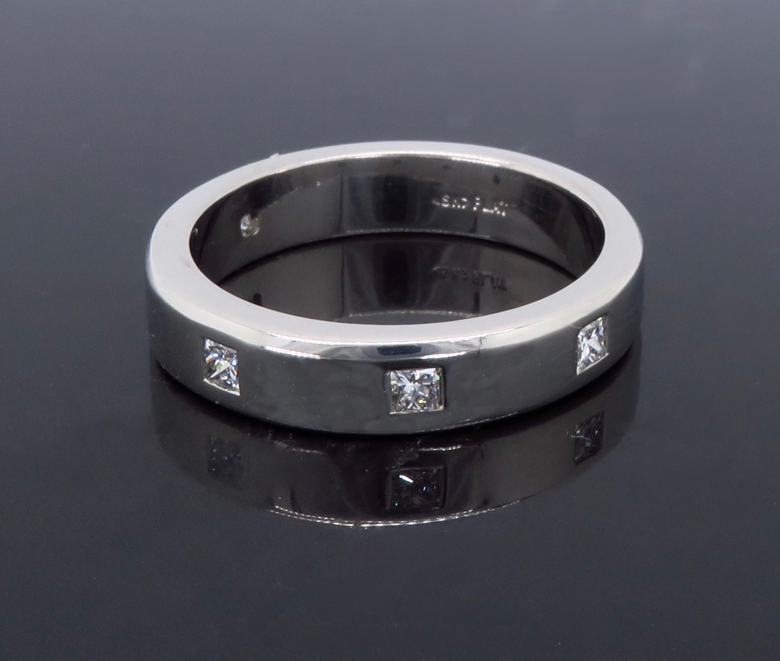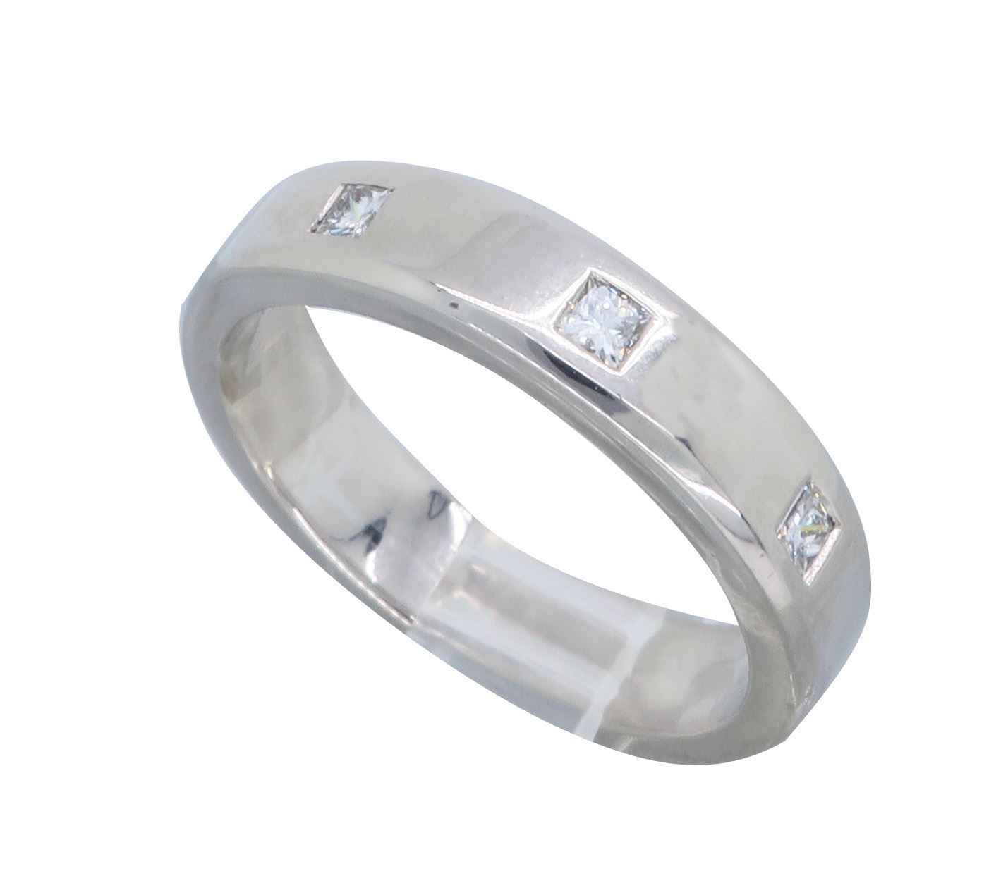 One Platinum 0.30ctw Diamond Wedding Band. Princess cut Diamonds with a total weight of 0.30cts with a color of H-I and clarity of VS-2 to SI-1. Total weight of this wedding band is 8.4 grams.