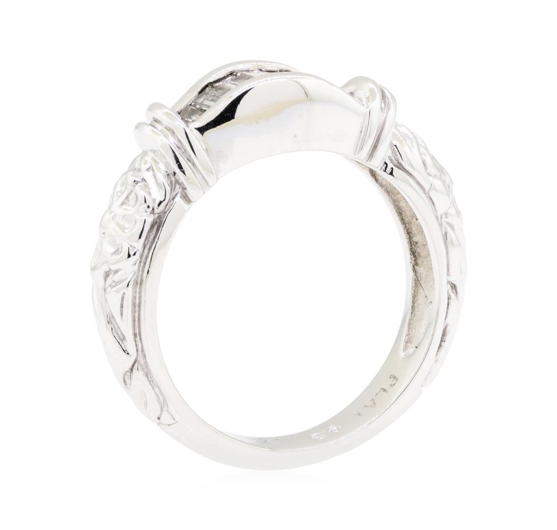 One ring featuring: platinum weighing 9.7 grams containing diamonds weighing 0.50ctw. The ring is a size 5.5.