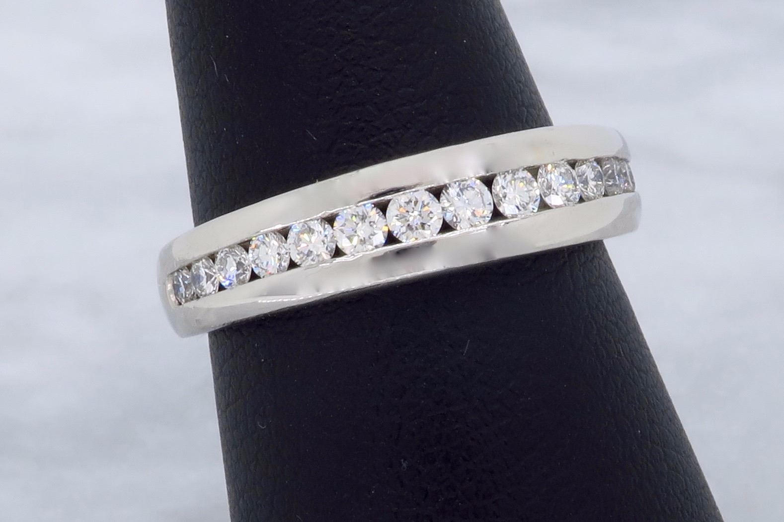 One Platinum 0.50ctw Diamond Ring. Round Diamonds with a total weight of 0.50cts. Total weight of this ring is 6.8 grams.