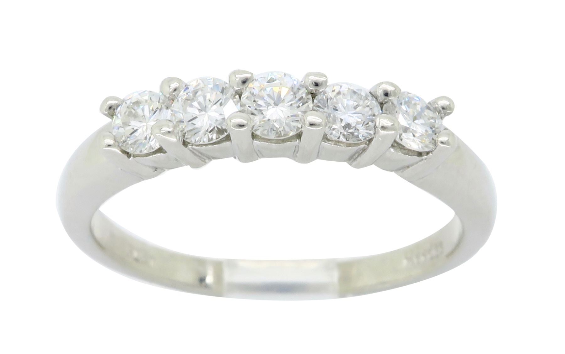 One Platinum 0.50ctw Diamond Ring. Round Diamonds with a total weight of 0.50cts with a color of G-H and clarity of VS-2 to SI-1. Total weight of this ring is 5.1 grams.