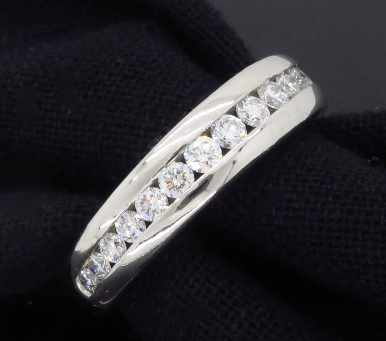 One Platinum 0.50ctw Diamond Ring. Round Diamonds with a total weight of 0.50cts. Total weight of this ring is 6.8 grams.