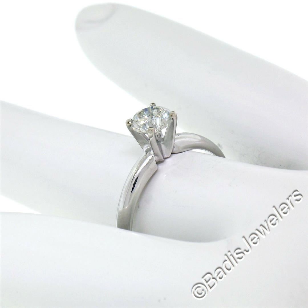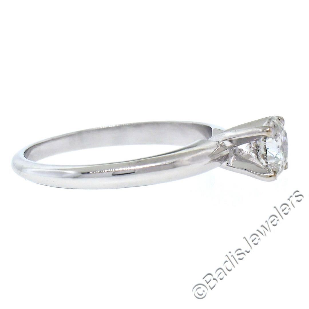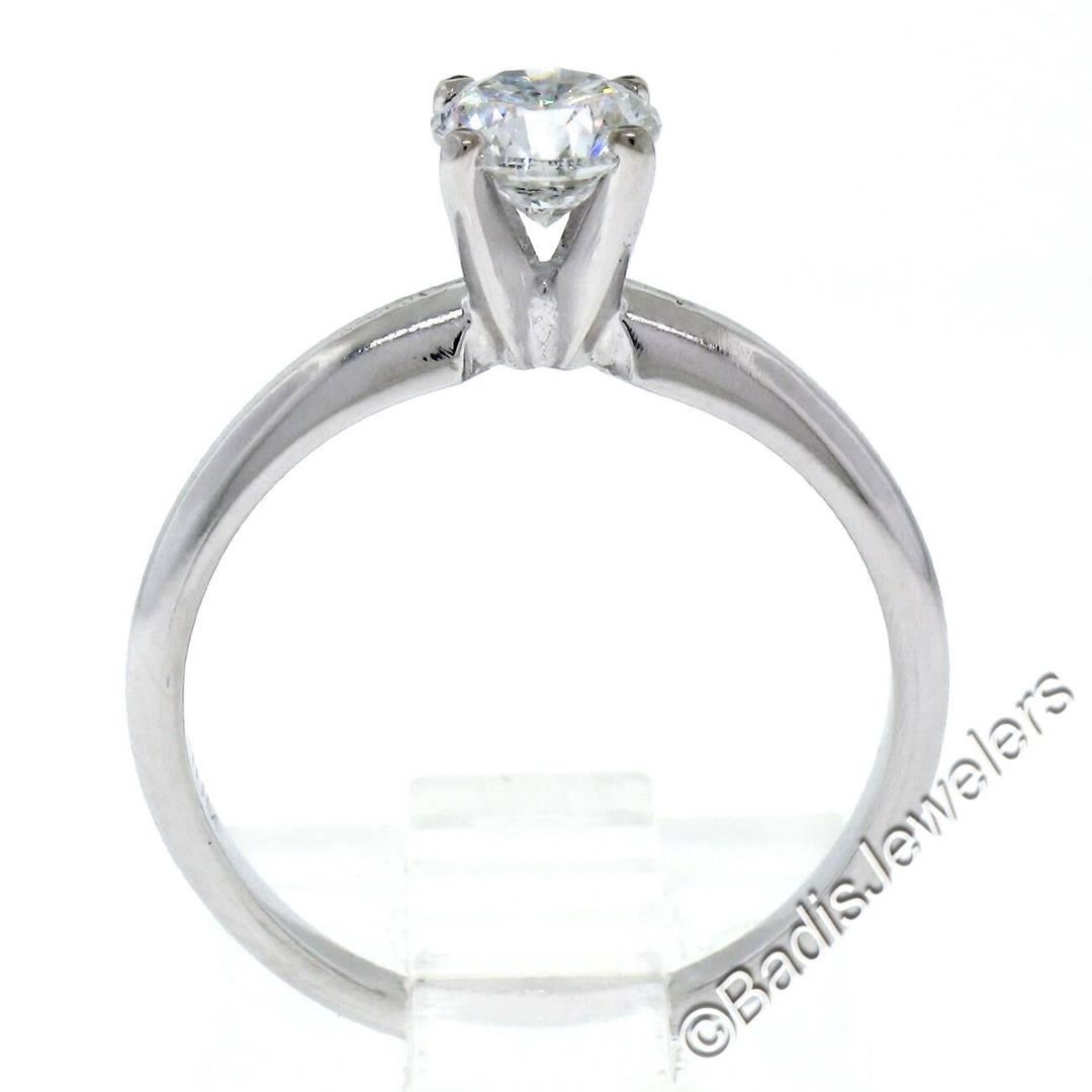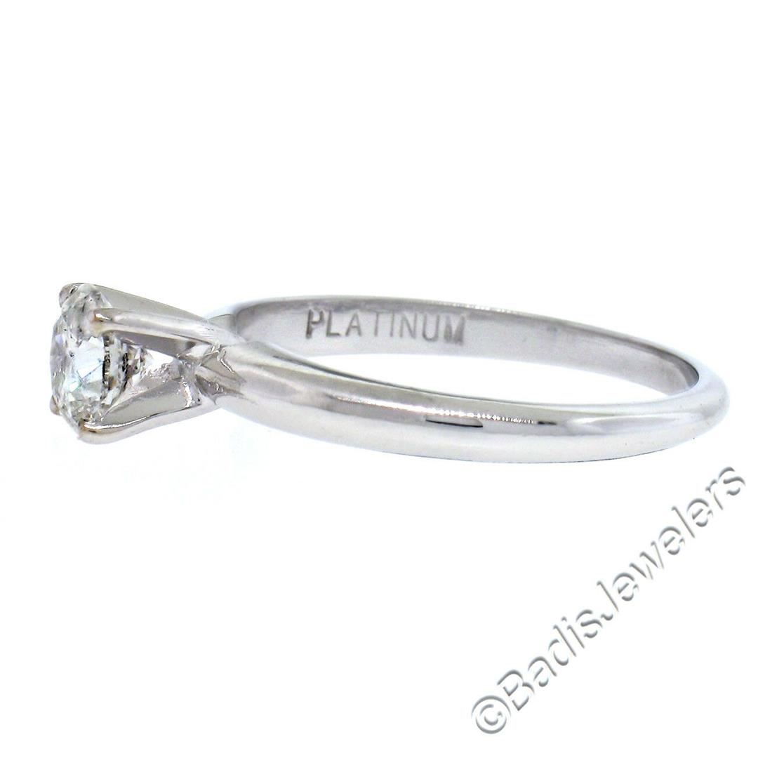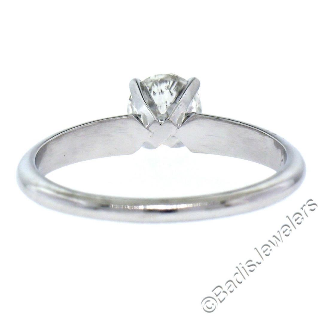 A platinum 0.60ct round brilliant diamond (G - SI2) solitaire engagement ring. The ring is size 6.0, weighs a total of 3.59 grams, and measures 5.35mm wide.