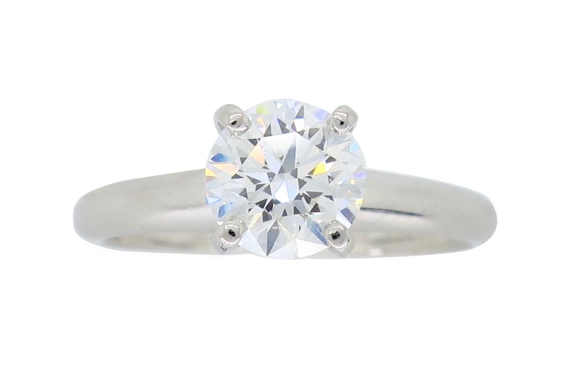 One Platinum 0.75ct Diamond Ring. (1) Round Diamond with a total weight of 0.75cts with a color of G and clarity of VS-2. Total weight of this ring is 3.6 grams. Ring size is 4.5.