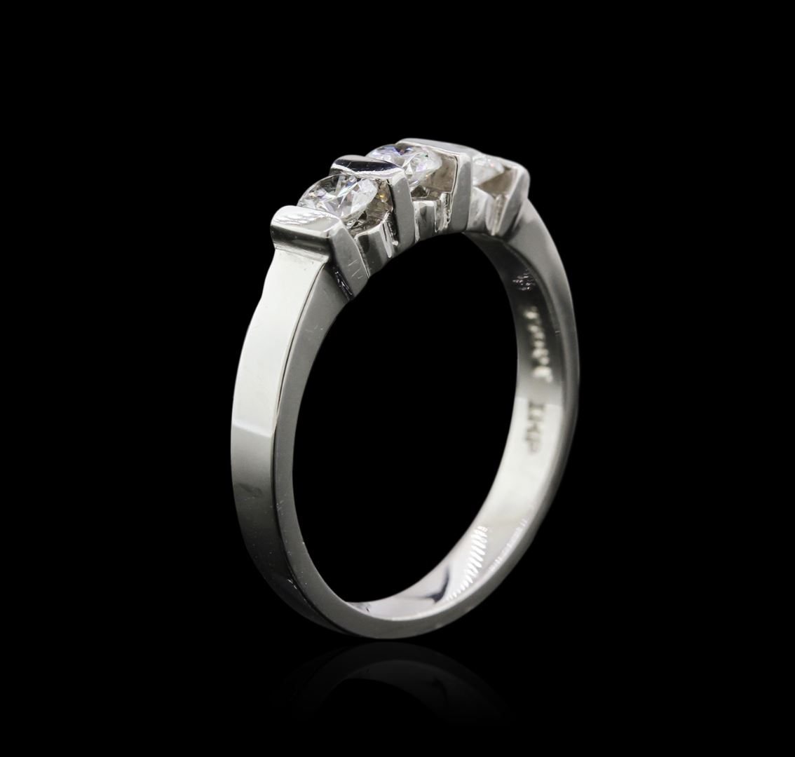 One ring featuring: platinum weighing 6.10 grams containing three diamonds with a total weight of 0.75ct.