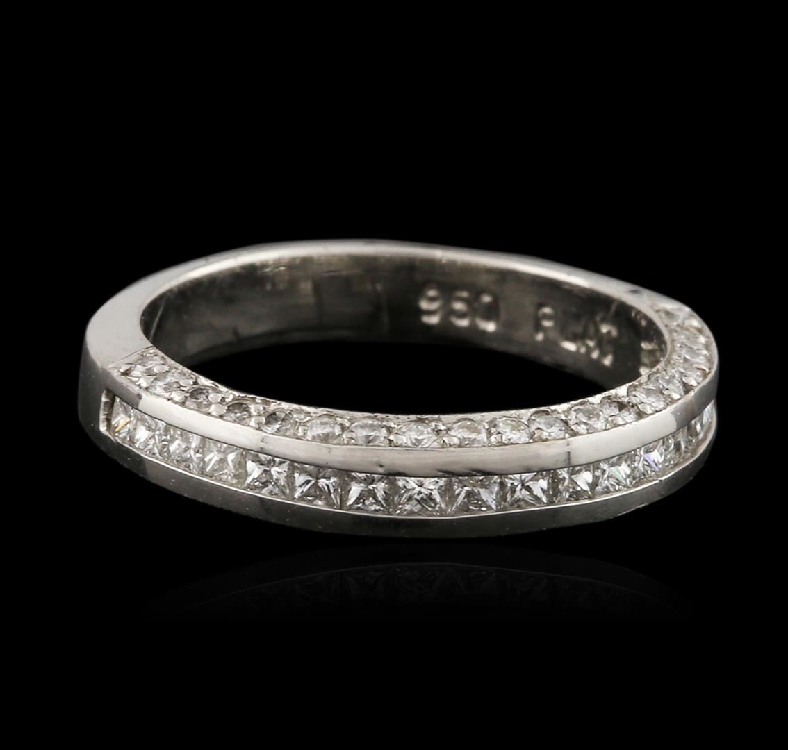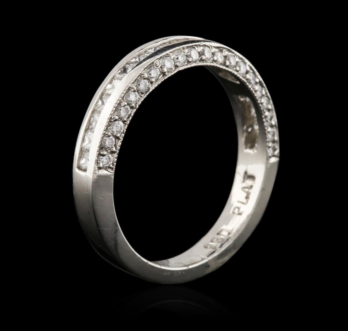 One ring featuring: platinum weighing 3.70 grams containing pave set round diamonds and channel set princess cut diamonds with a total weight of 0.75ct.