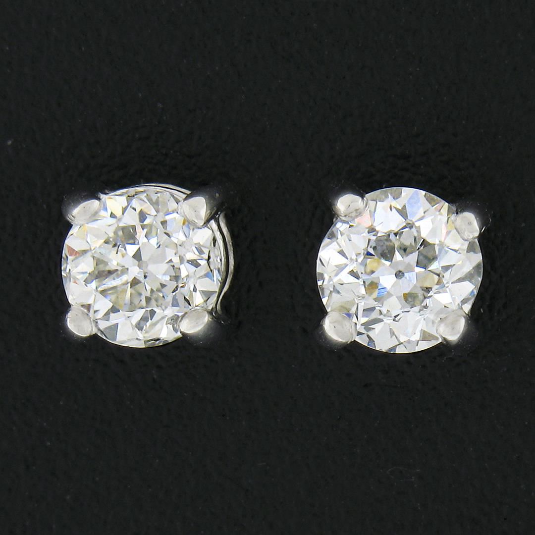 An antique solid platinum stud earrings, with 2 old european cut natural diamonds (H/I - VS2/SI1 ; 0.81). The earrings measure approximately 6mm in diameter and weigh a total of 1.83 grams.