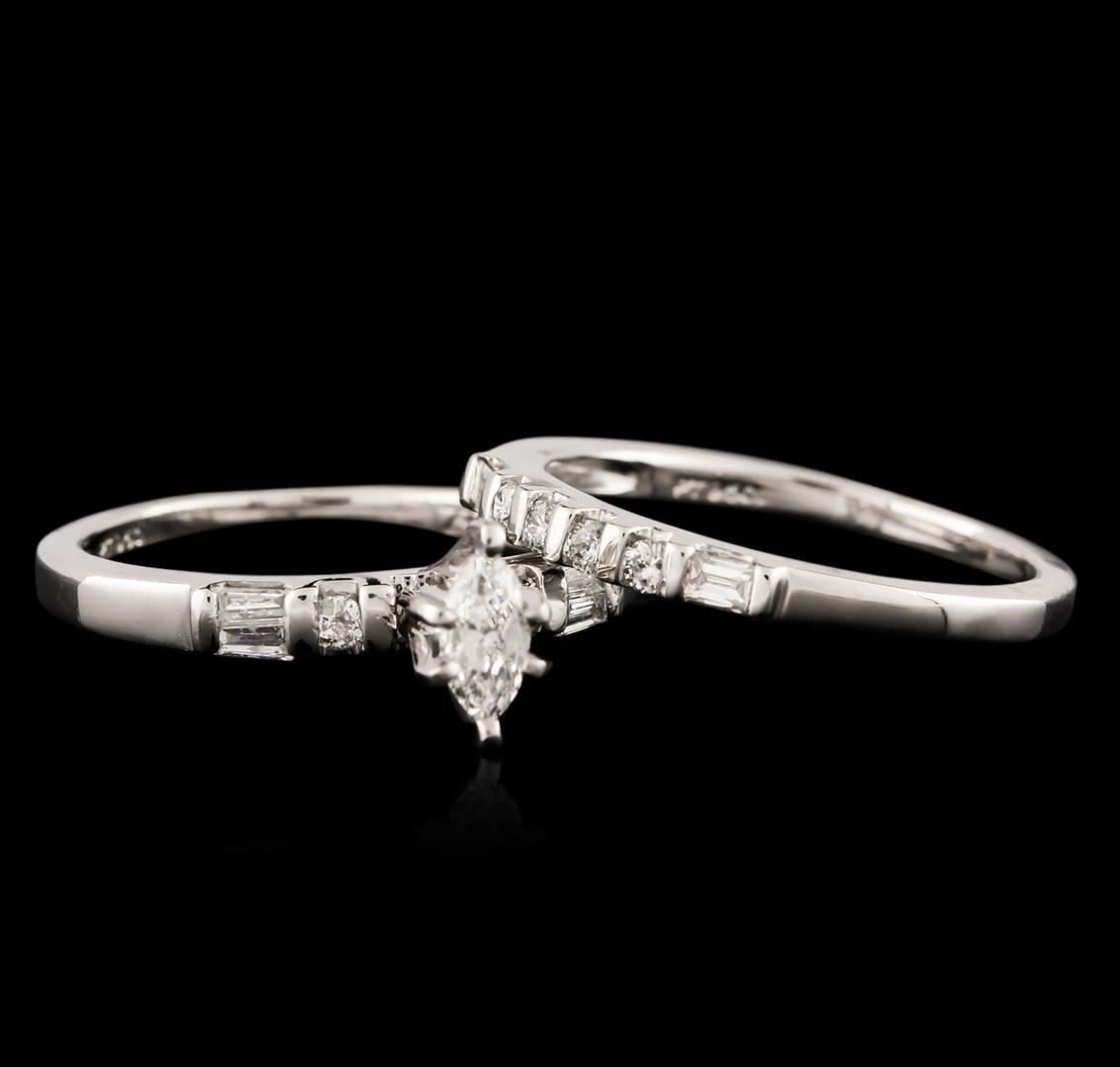 One wedding ring set featuring: Platinum weighing 6.20 grams containing one center diamond weighing 0.40ct and diamonds weighing a total of 0.45ct.