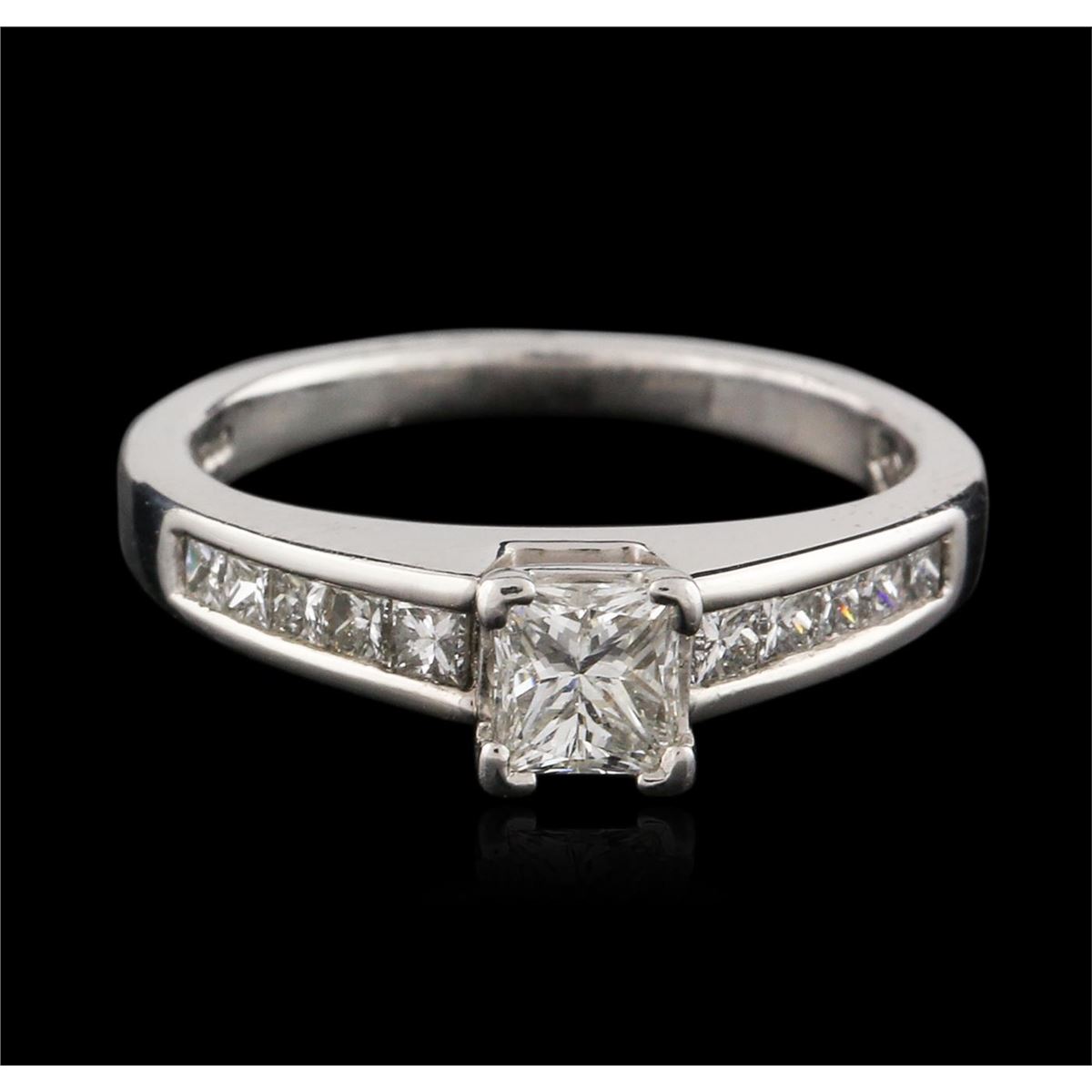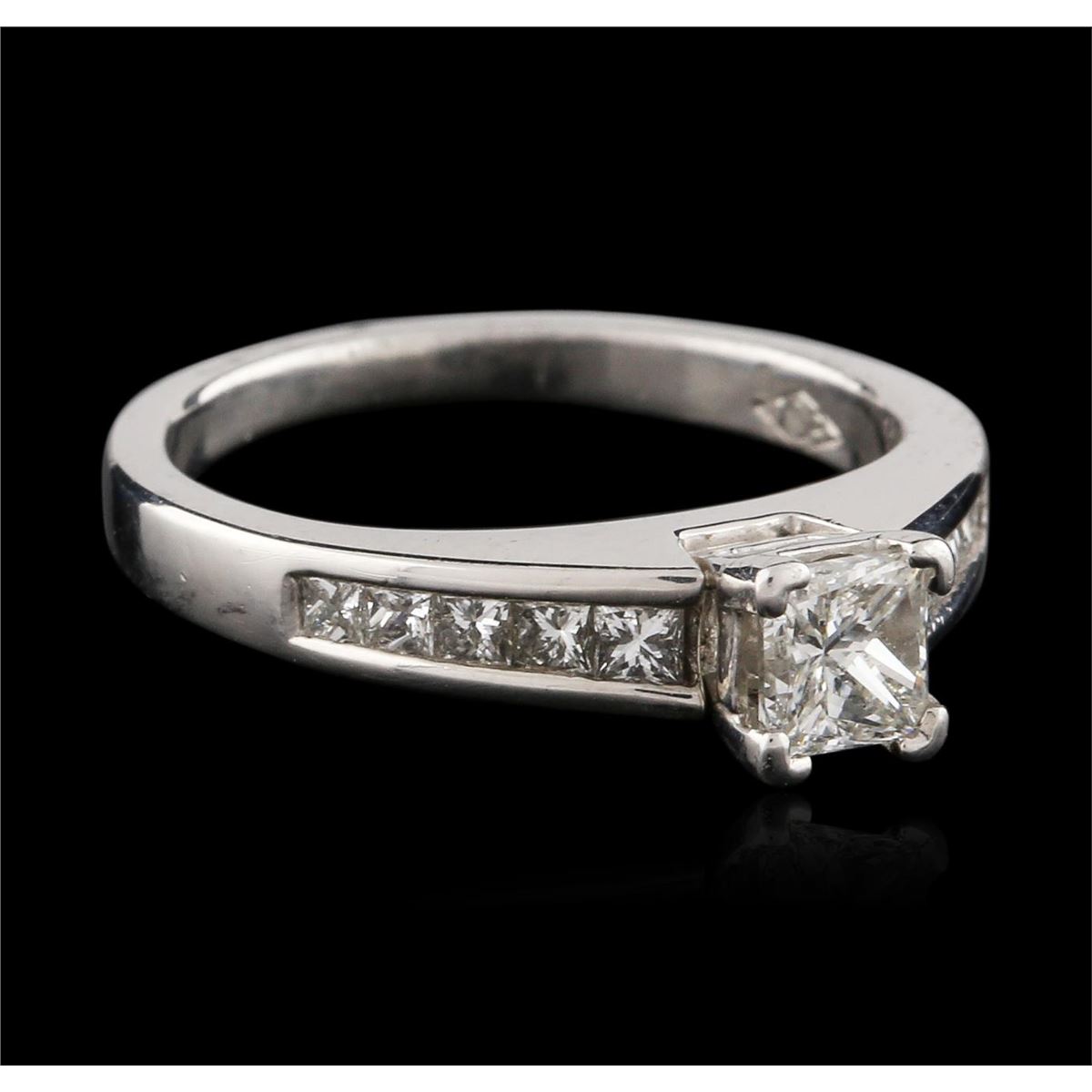 One ring featuring: platinum weighing 5.40 grams containing one princess cut center diamond and channel set princess cut side diamonds with a total diamond weight of 1.00ct.