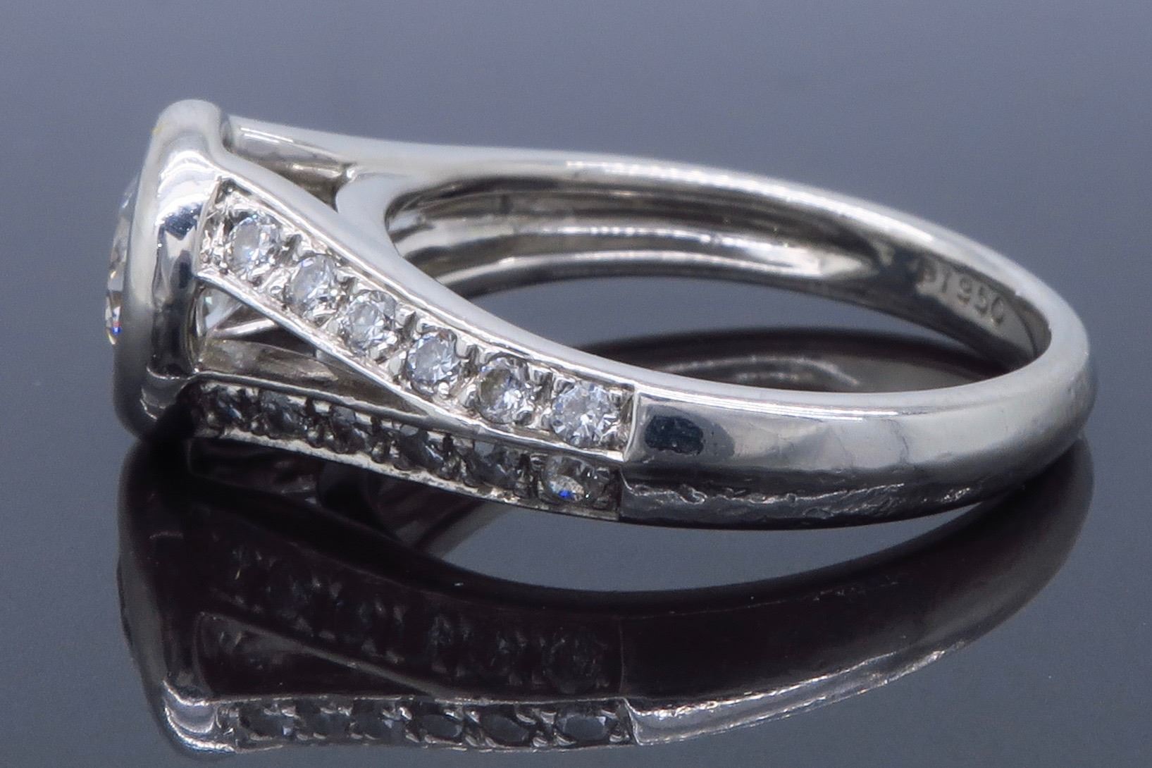 One Platinum 1.00ctw Diamond Ring. (1) Round center Diamond with a total weight of 0.70cts with a color of G-H and clarity VS-1 to VS-2. Round side Diamonds with a total weight of 0.30cts. Total weight of this ring is 5.9 grams. Ring size is 4.25.