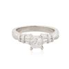 One electronically tested platinum ladies cast & assembled diamond unity ring with a bright and patterned finish. Condition is new, good workmanship. The featured diamond is cathedral set supported by diamond set shoulders, completed by a two and one-half millimeter wide band. Trademark is LeVian. Identified with markings of "PLAT 900". Containing: One prong set princess cut diamond, measuring 4.60 x 4.50 x 3.90mm (depth est.) approximate weight of 0.69ct with a medium strong blue fluorescence. Graded in the setting. Clarity: I-1. Color: 86.7%. Table 77.8%. Four channel set round brilliant cut diamonds, measuring 1.70 - 1.60 x 0.99mm (depth est.) approximate. Total Weight of 4 Stones = 0.10ct. Graded in the setting. Clarity: VS-2 to SI-1. Color: G - I Six channel set baguette cut (tapered) diamonds, measuring from 3.00 x 1.30 x 0.91mm (depth est.) to 3.20 x 1.40 x 0.98mm (depth est.) approximate. Total Weight of 6 Stones = 0.22ct. Graded in the setting. Clarity: VS-1 to VS-2. Color: G - I. Total Weight of Diamonds 1.01ct. Total Weight of Ring 7.47 grams. AIG Appraised at $7,530.00.
