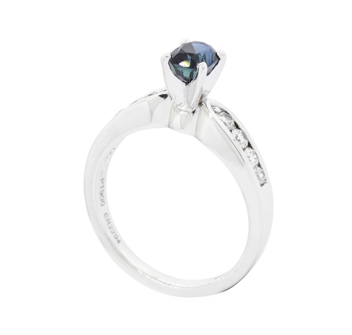 One ring featuring: platinum weighing 6.8 grams containing one sapphire weighing 1.05ct and diamonds weighing 0.40ctw. The ring is a size 7.25.