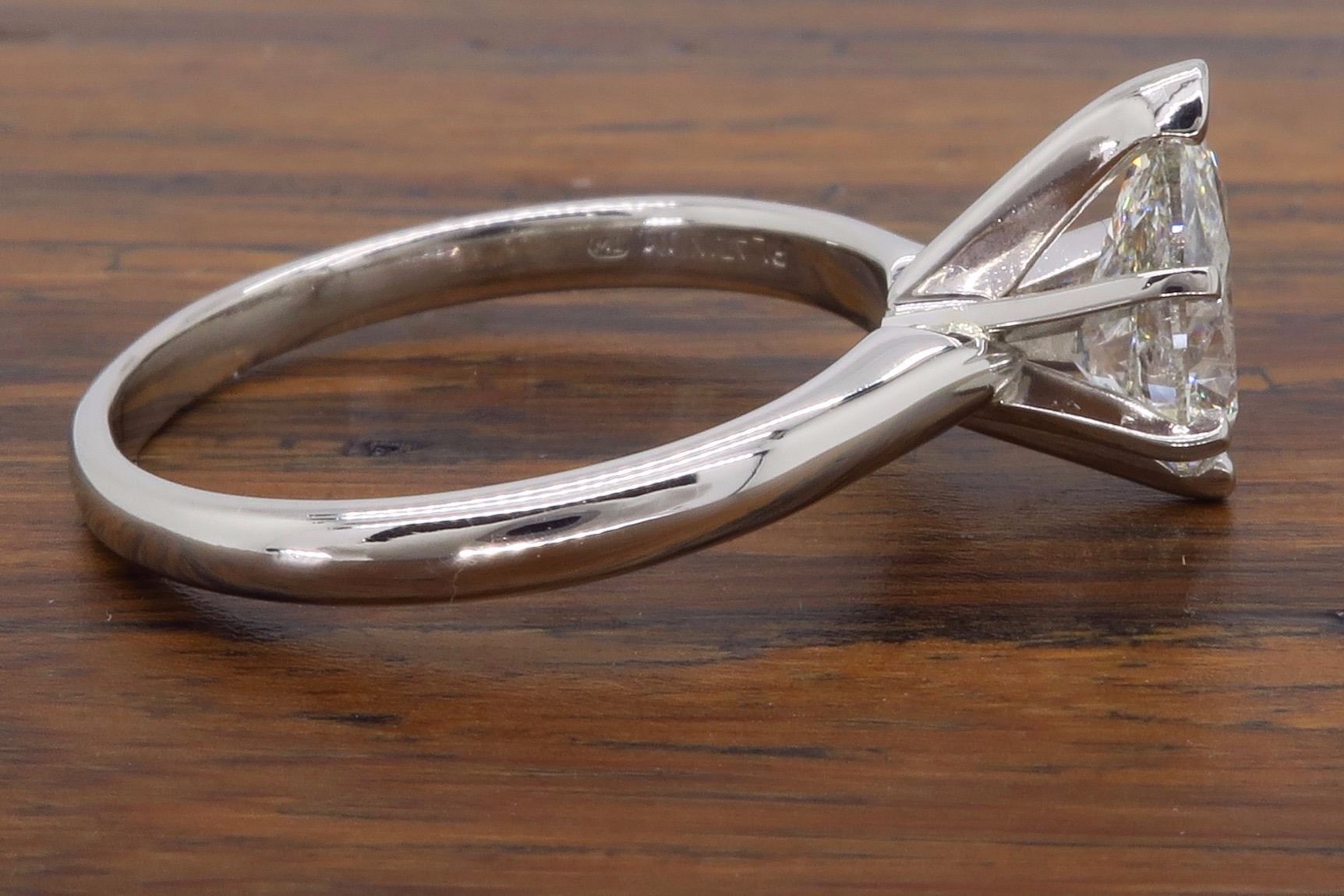 One Platinum 1.06ct Pear Shaped Diamond Ring. (1) Pear shaped Diamond with a total weight of 1.06cts with a color of I and clarity of I-1. Total weight of this ring is 4.1 grams.