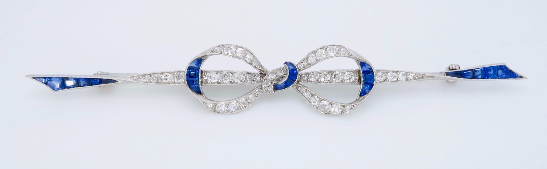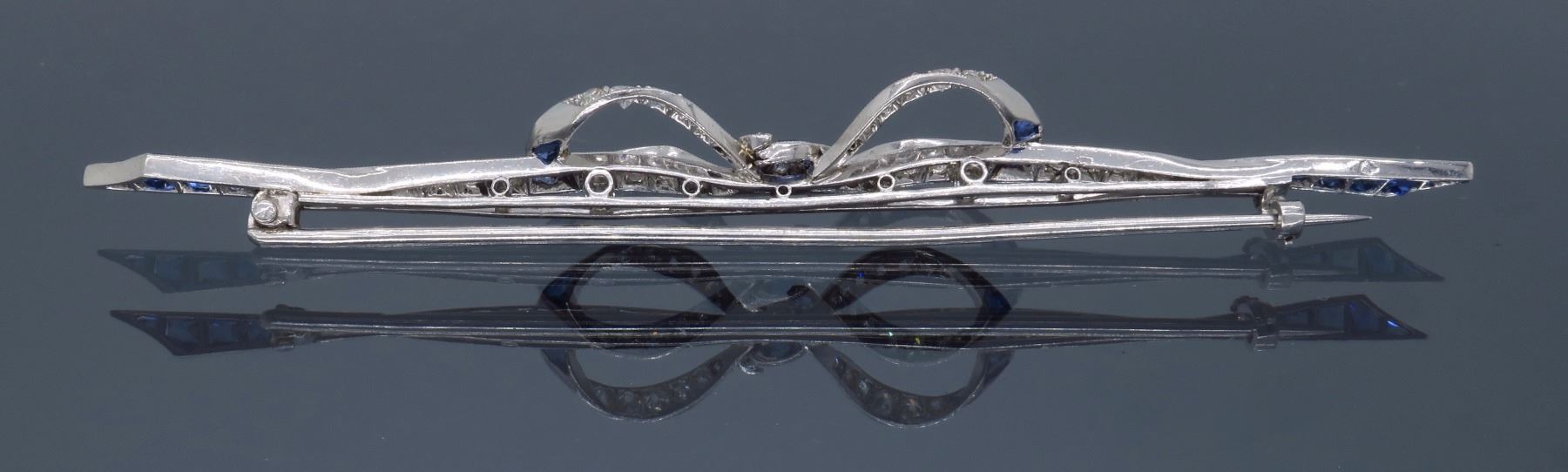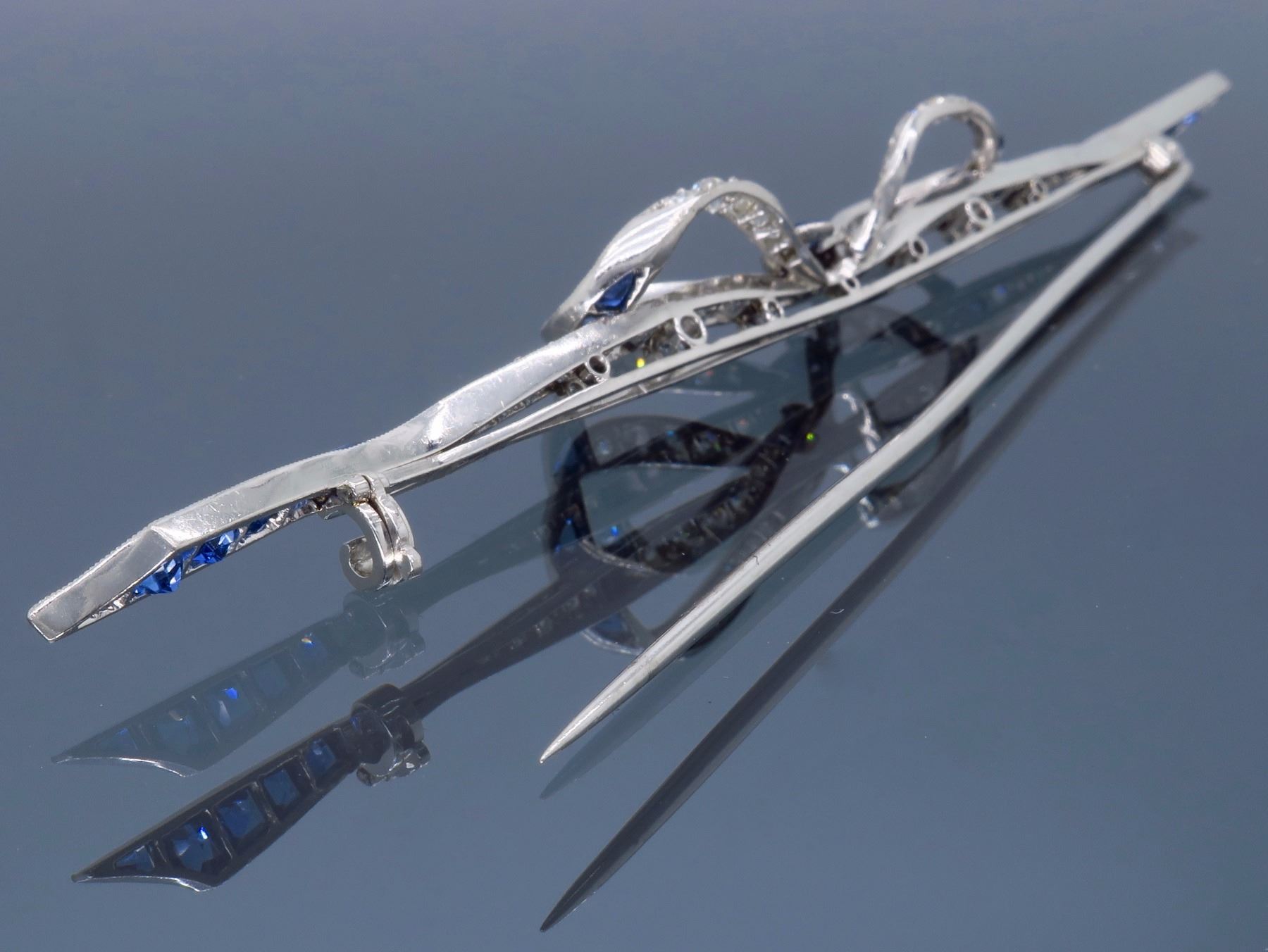 One Platinum 1.08ctw Sapphire and Diamond Pin. Old European cut diamonds with a total weight of 1.08cts with a color of F-H and clarity of VS2 to I-1. Total length of this pin is 3.5 inch.