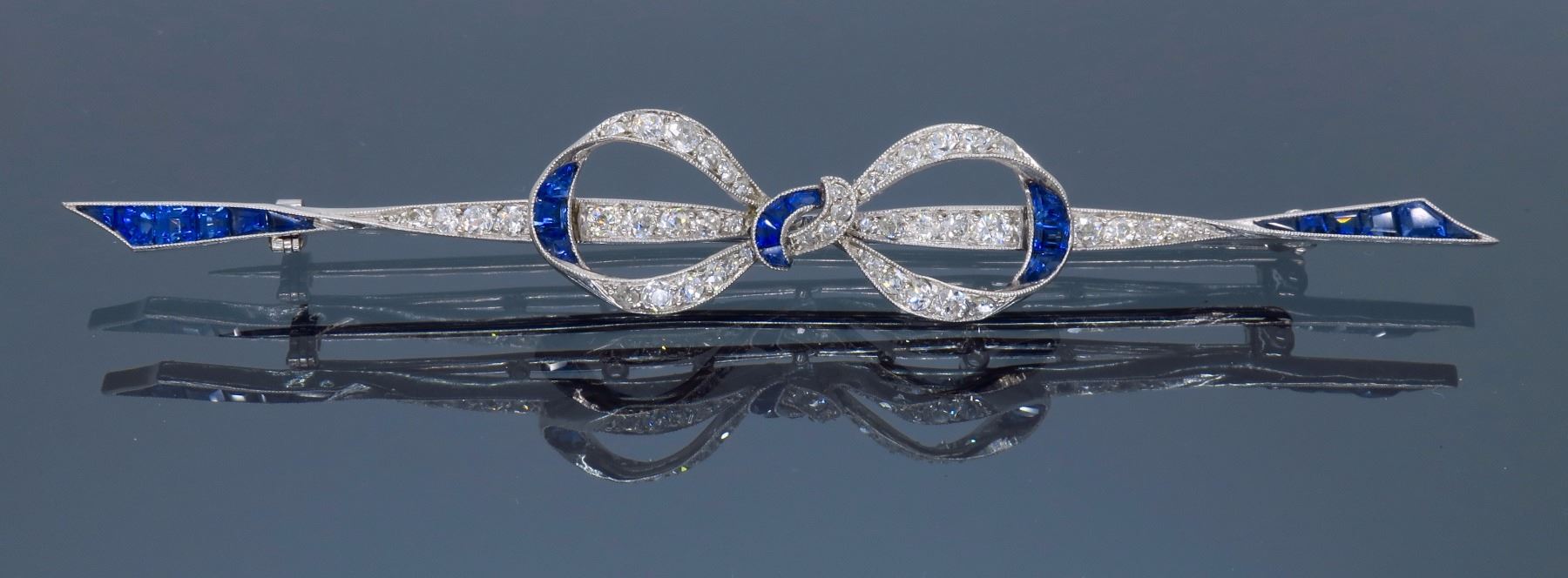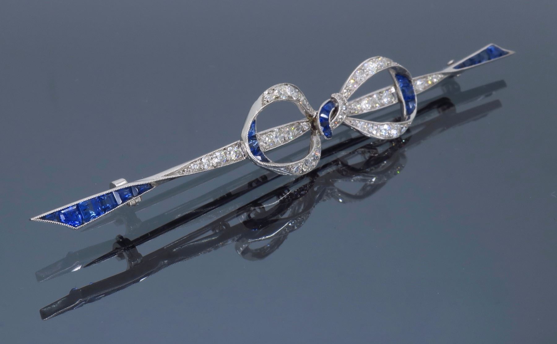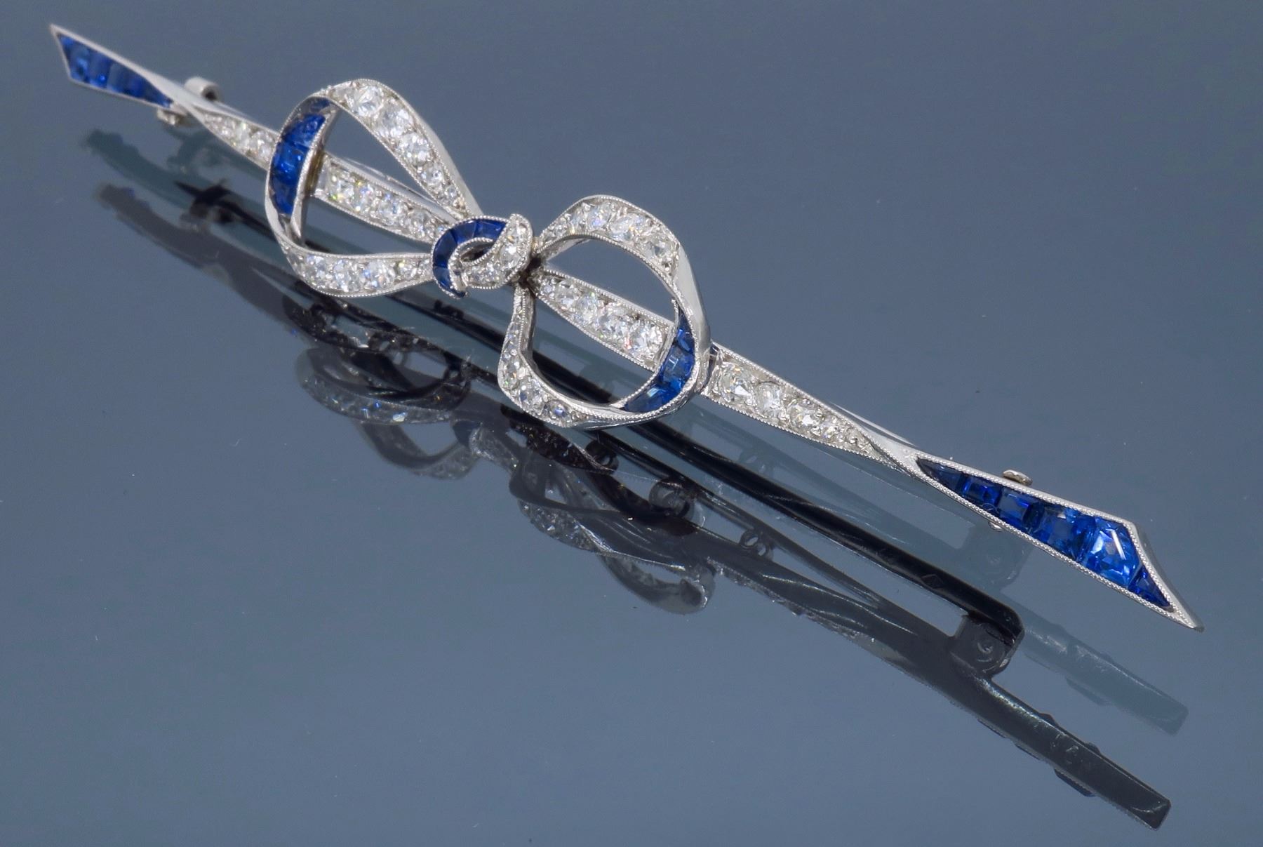 One Platinum 1.08ctw Sapphire and Diamond Pin. Old European cut diamonds with a total weight of 1.08cts with a color of F-H and clarity of VS2 to I-1. Total length of this pin is 3.5 inch.