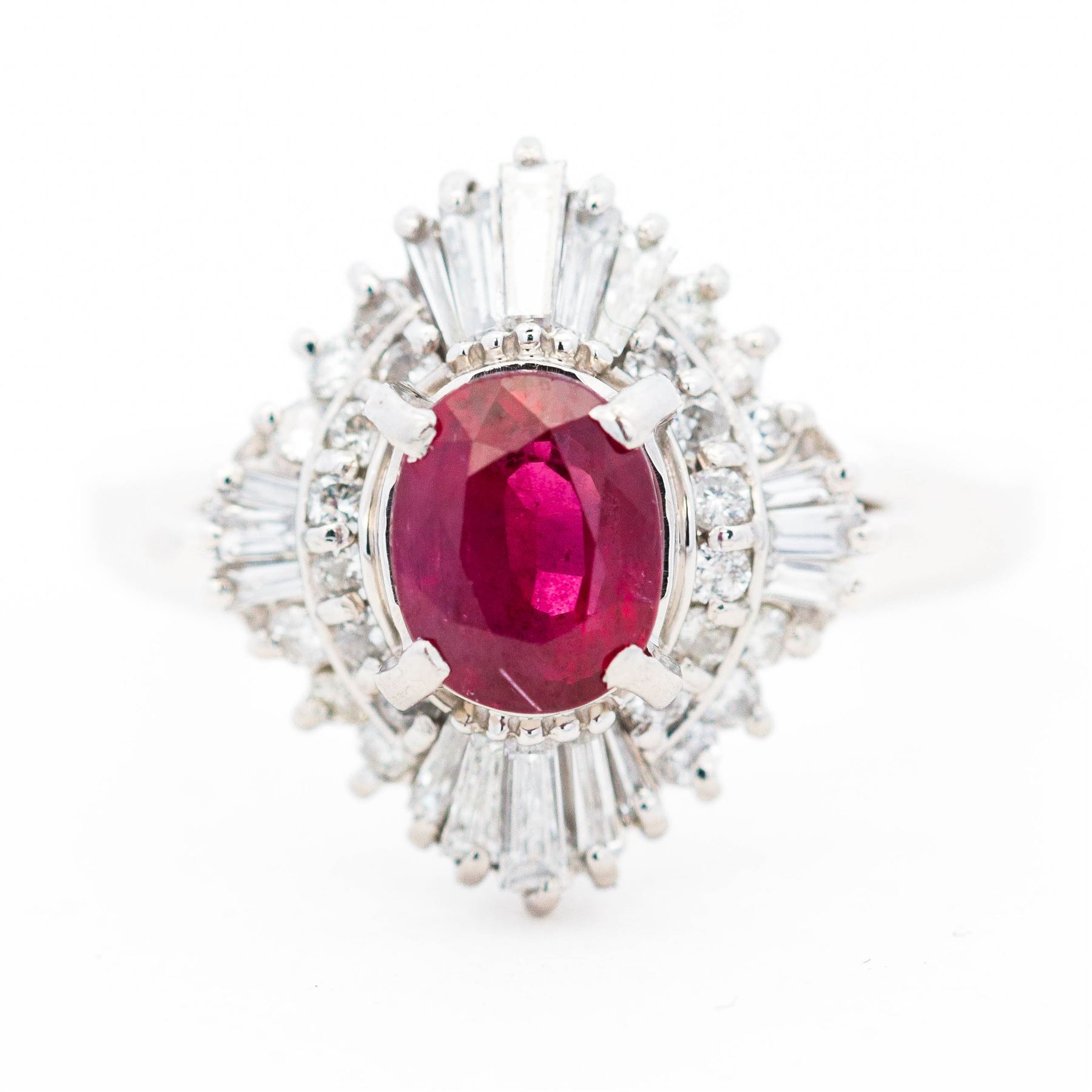1.17ct Ruby in platinum setting with 0.50ctw natural baguette cut & amp; round brilliant diamonds& nbsp;