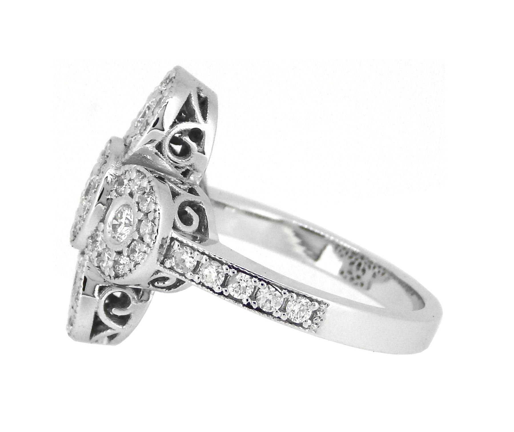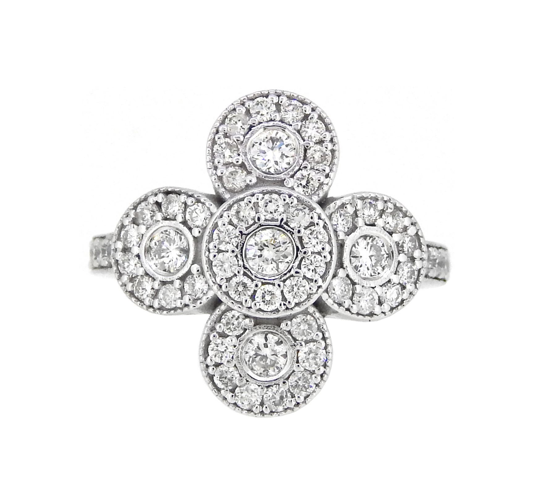 One Platinum 1.25ctw Diamond Ring. (57) Diamonds with a total weight of 1.25cts with a color of G-H and clarity of SI-1 to SI-2. Total weight of 12.6 grams.