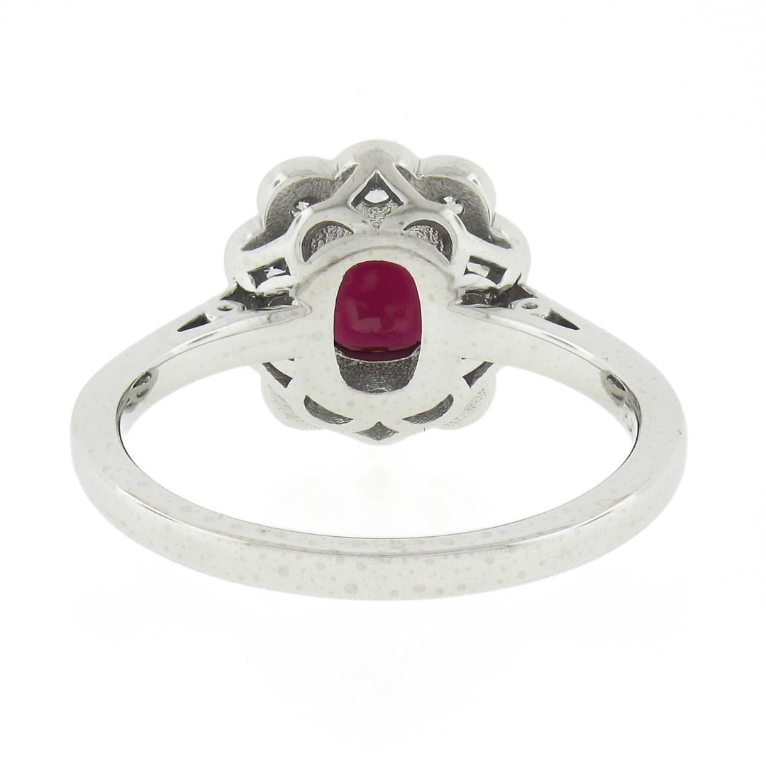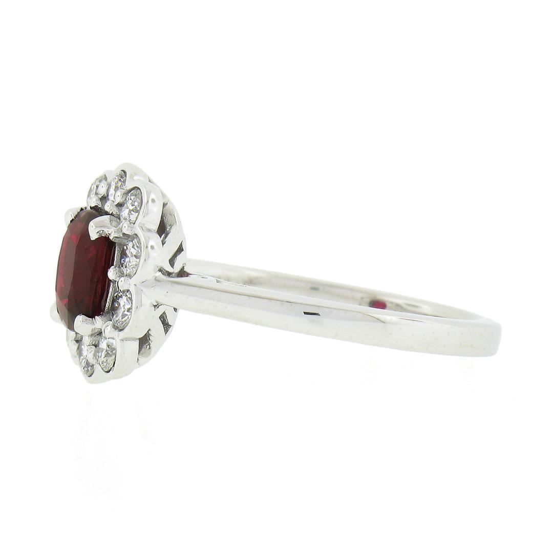 A new solid platinum ring, with 1 GIA graded cushion cut natural spinel (0.92ct ), surrounded with a halo of 10 round cut natural diamonds (G/H - VS1/VS2 ; 0.43ctw). The ring is size 6.5, weighs a total of 5.43 grams, and measures 11.55mm wide. Comes with all original relevant certifications.