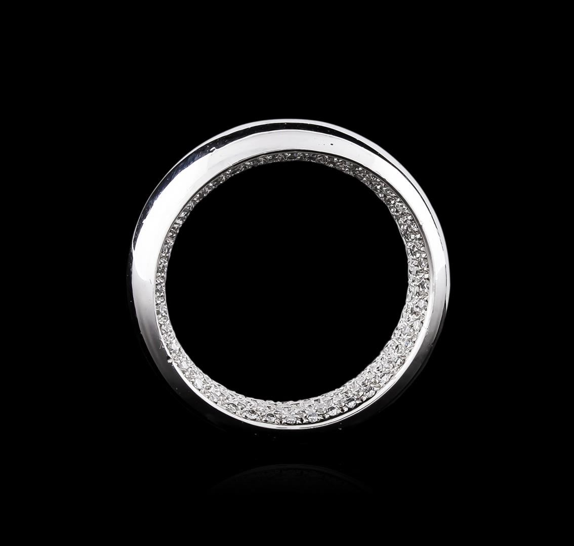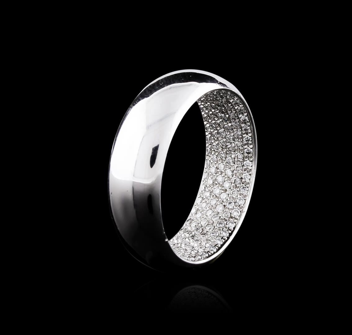 One electronically tested platinum cast diamond ring with a bright polish finish. The continuous seven and one-half millimeter wide ring features a diamond encrusted inner shank. Ring size 9.50. Condition is good. Containing: Two Hundred Forty prong set round brilliant cut diamonds, measuring 1.20 - 1.10 x 0.69mm (depth est.) approximate total weight of 240 Stones = 1.42ct. Graded in the setting. Clarity: VVS-2 to VS-2. Color: G - I. Total Weight of Diamonds 1.42ct. Total Weight of Ring 22.30 grams. AIG Appraised at $12,500.00.